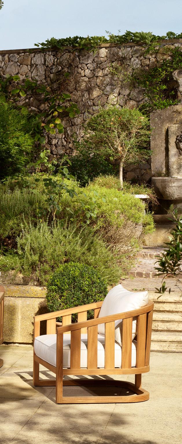 Design meets open air in a setting where every piece is thoughtfully curated to elevate outdoor living with a Provençal sense of style. The Aruba outdoor sofa and chair stand out with soft, organic lines and a refined presence. Crafted from natural teak, they bring warmth, texture, and timeless elegance to any garden or terrace. More than a place to lounge, their flowing silhouettes transform a sunlit corner into a serene and sophisticated retreat where indoor comfort meets outdoor freedom.