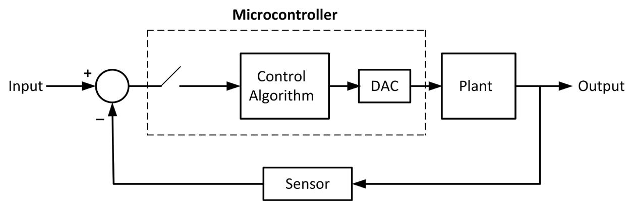 De nos jours, pratiquement tous les systèmes asservis sont basés sur un microcontrôleur, qui est utilisé comme dispositif de commande central. Certains capteurs (température, pression, humidité, etc.) fournissent des signaux de sortie numériques et peuvent être connectés directement à un microcontrôleur. Les capteurs analogiques ne peuvent pas être reliés directement à un microcontrôleur. Un convertisseur analogique-numérique (CA/N) est nécessaire pour convertir le signal analogique du capteur en signal numérique afin qu’il puisse être appliqué à un microcontrôleur.