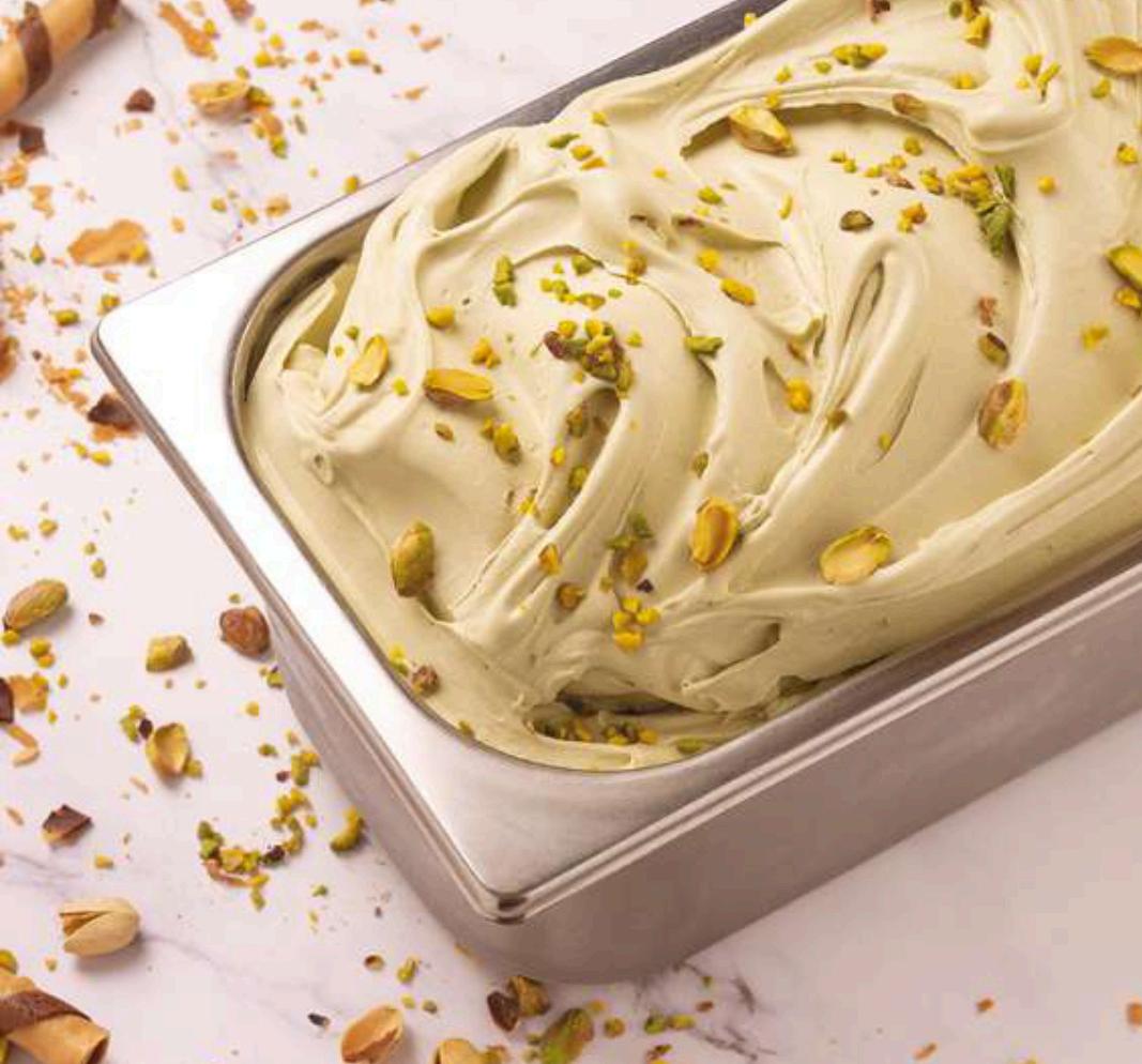 pistáciová pasta z pražených pistácií (99,5%) s výraznejšou zelenou farbou ideálna do zmrzliny a cukrárskych výrobkov balenie: 3kg; 2ks v kartóne