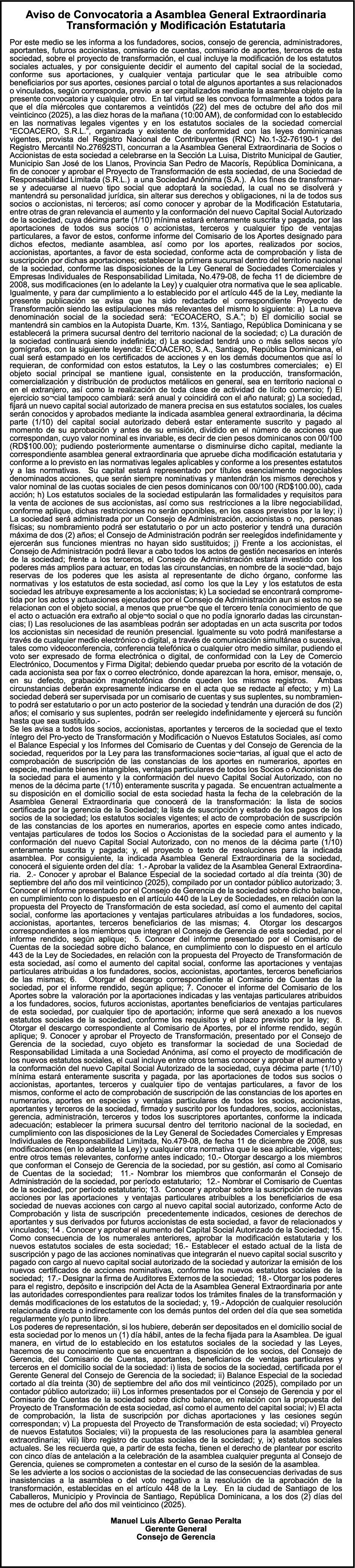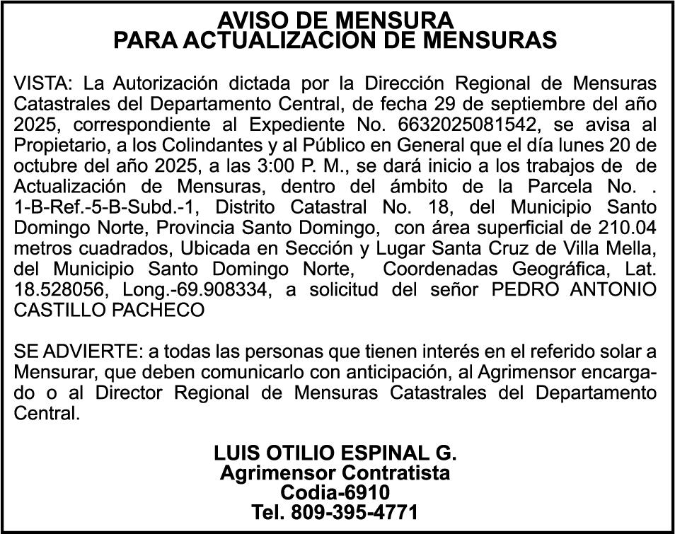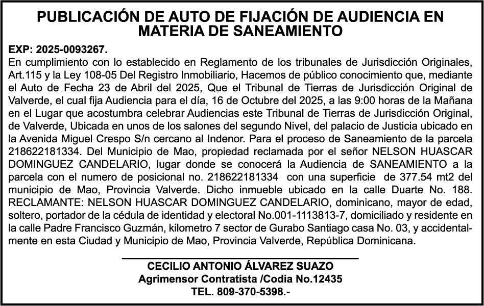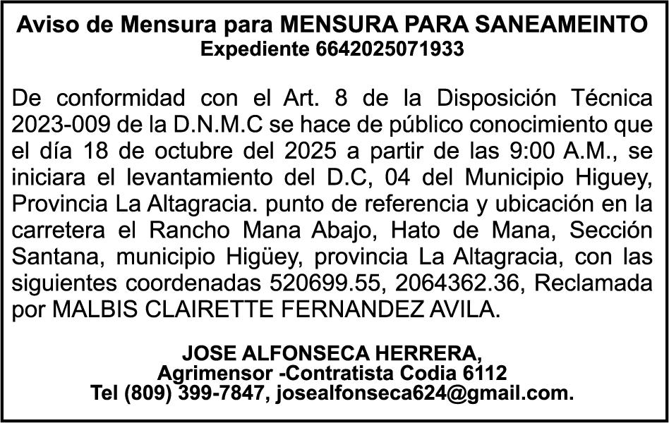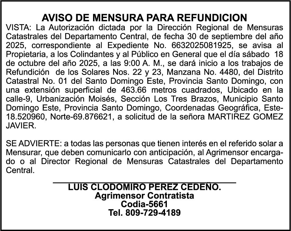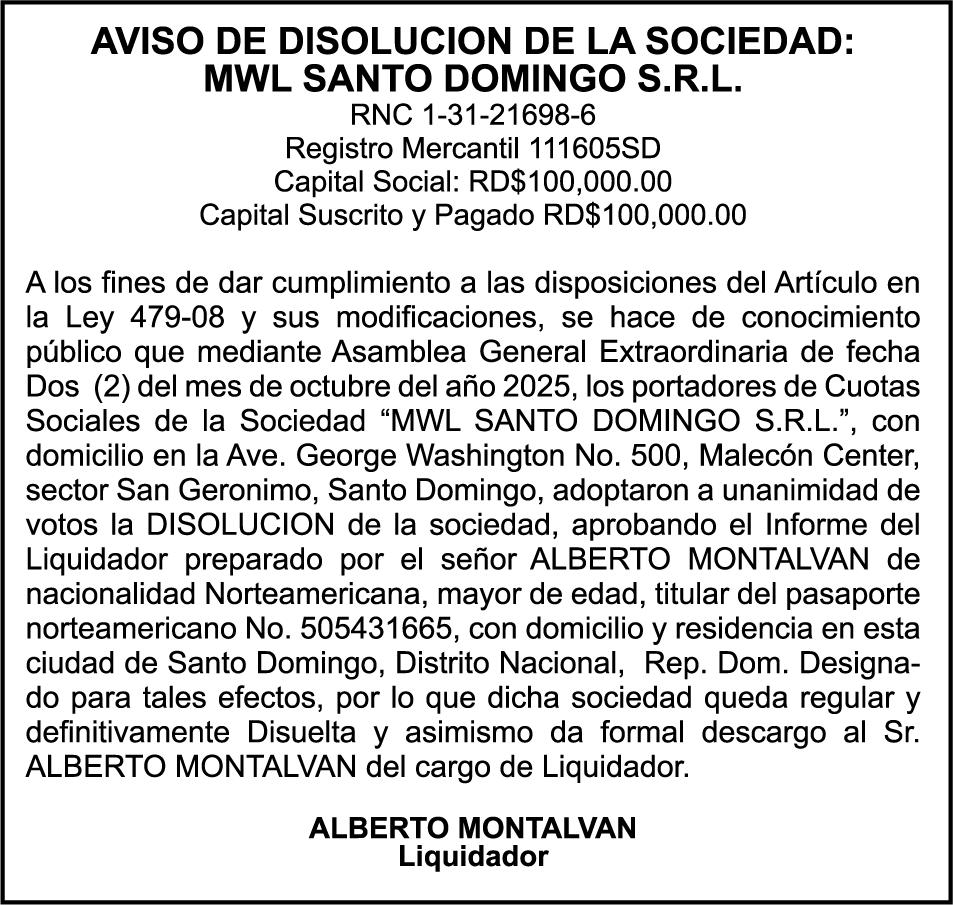 SE hace de público conocimiento la pérdida de los cheques de administración No. 5496133 y 5496134 de fecha 09 de septiembre del 2025 por un monto de Cuatro Millones Cinco Mil Cuatrocientos Treinta y Siete pesos con Ochenta y Dos centavos (RD$ 4,005,437.82) y Dos mil quinientos con cero centavos (RD$ 2,500.00) propiedad de Miguel Antonio Alvarez Hazim cedula 093-0018822-5.