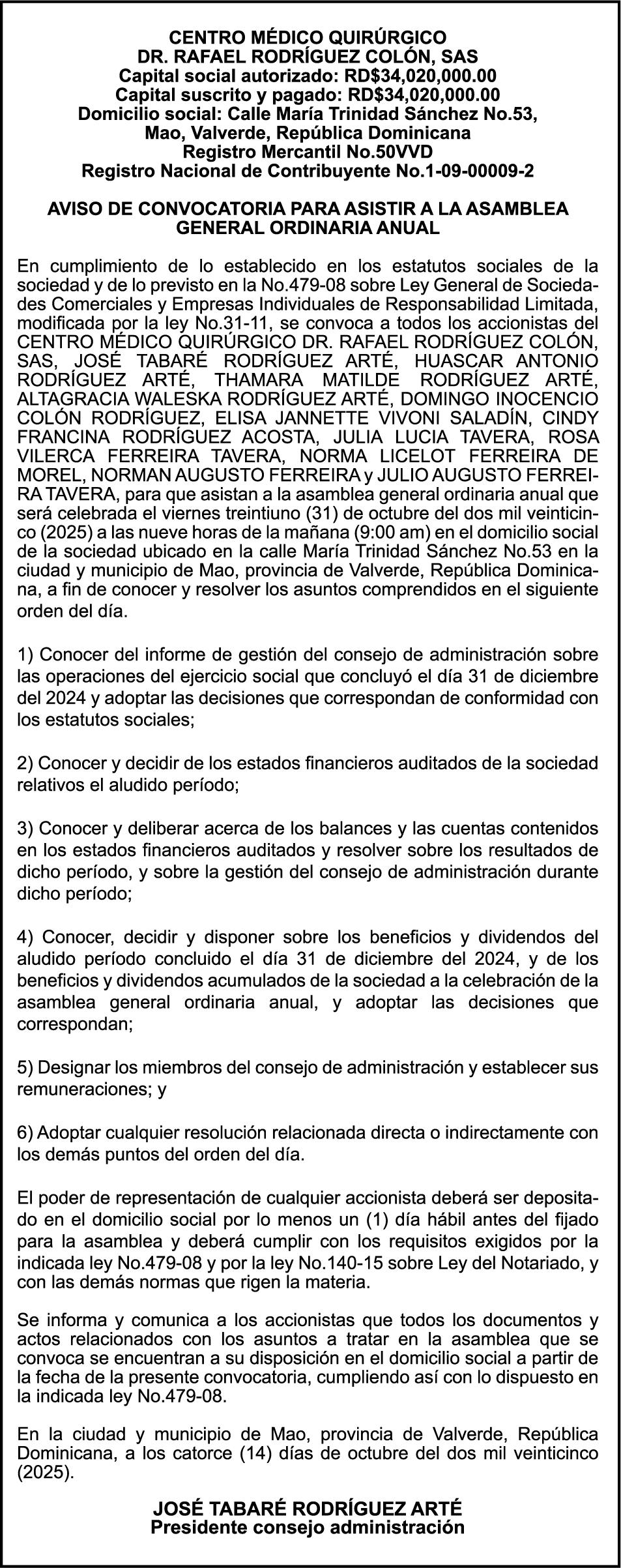 8:30 A.M. Rueda de prensa MESCyT y escuelas de medicina. Hotel Courtyard by Marriott.