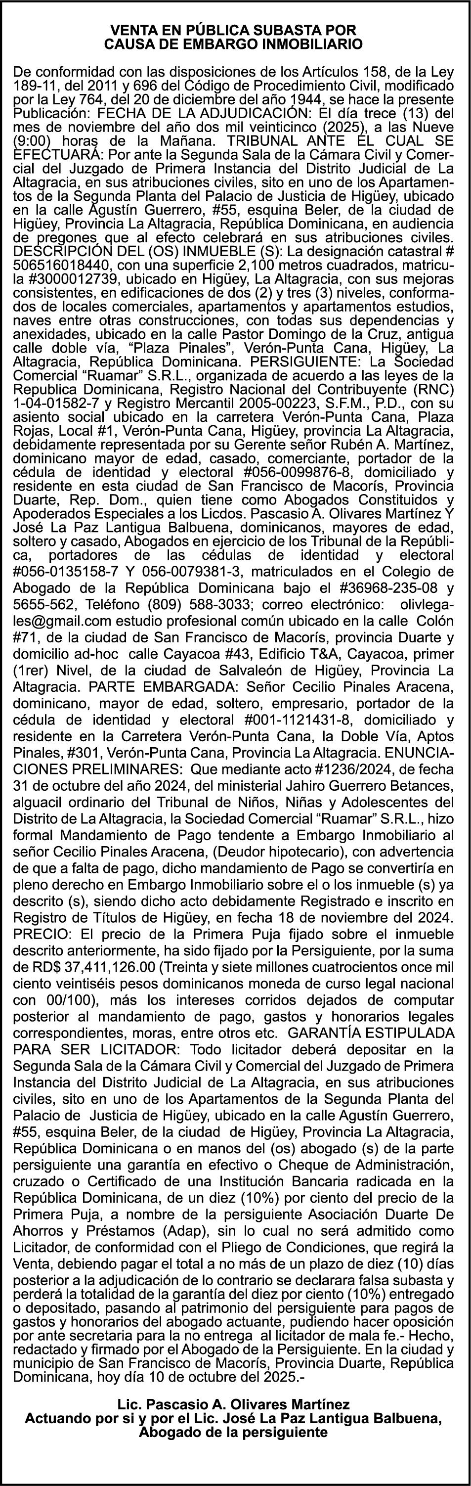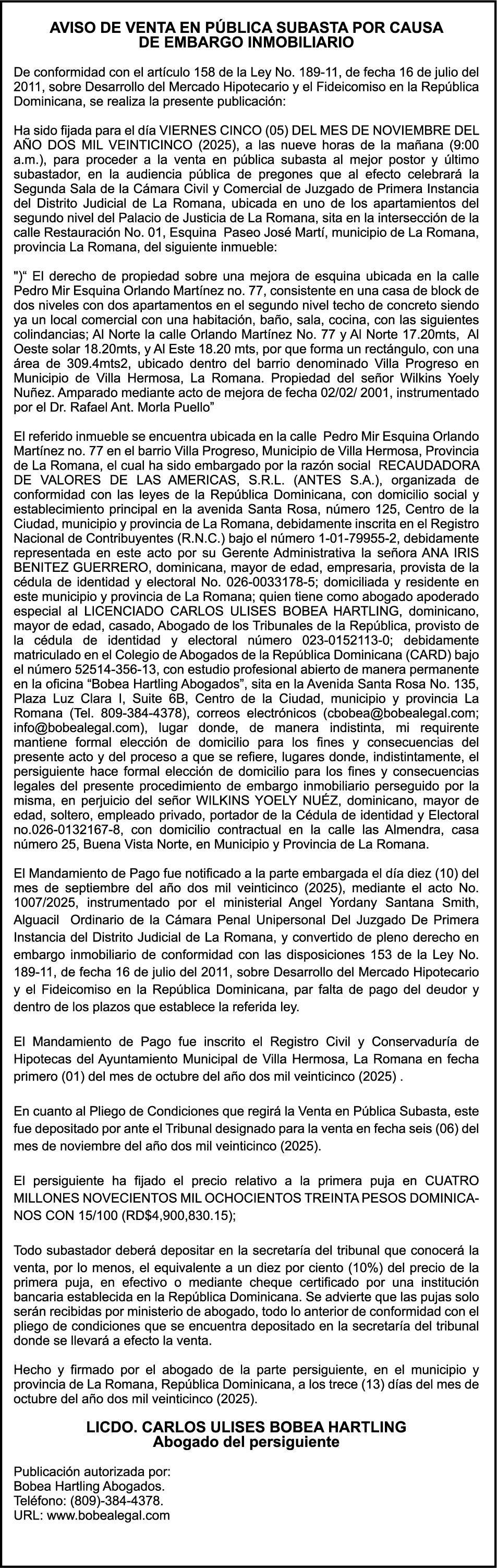 PERDIDA DE CONTRATO ARRENDAMIENTO DE SOLAR, No. 9, manzana No. 83, ubicado en la calle ESPAILLAT, No. 134, de la ciudad de La Romana, a nombre de: EDUARDO ORELUS PERDIDA DE PLACA No. AA12052, Automovil Privado NISSAN, Modelo NOTE, Color azul, Año 2017, Chasis HE12-069202, a nombre de MARTIRES BALBUENA.