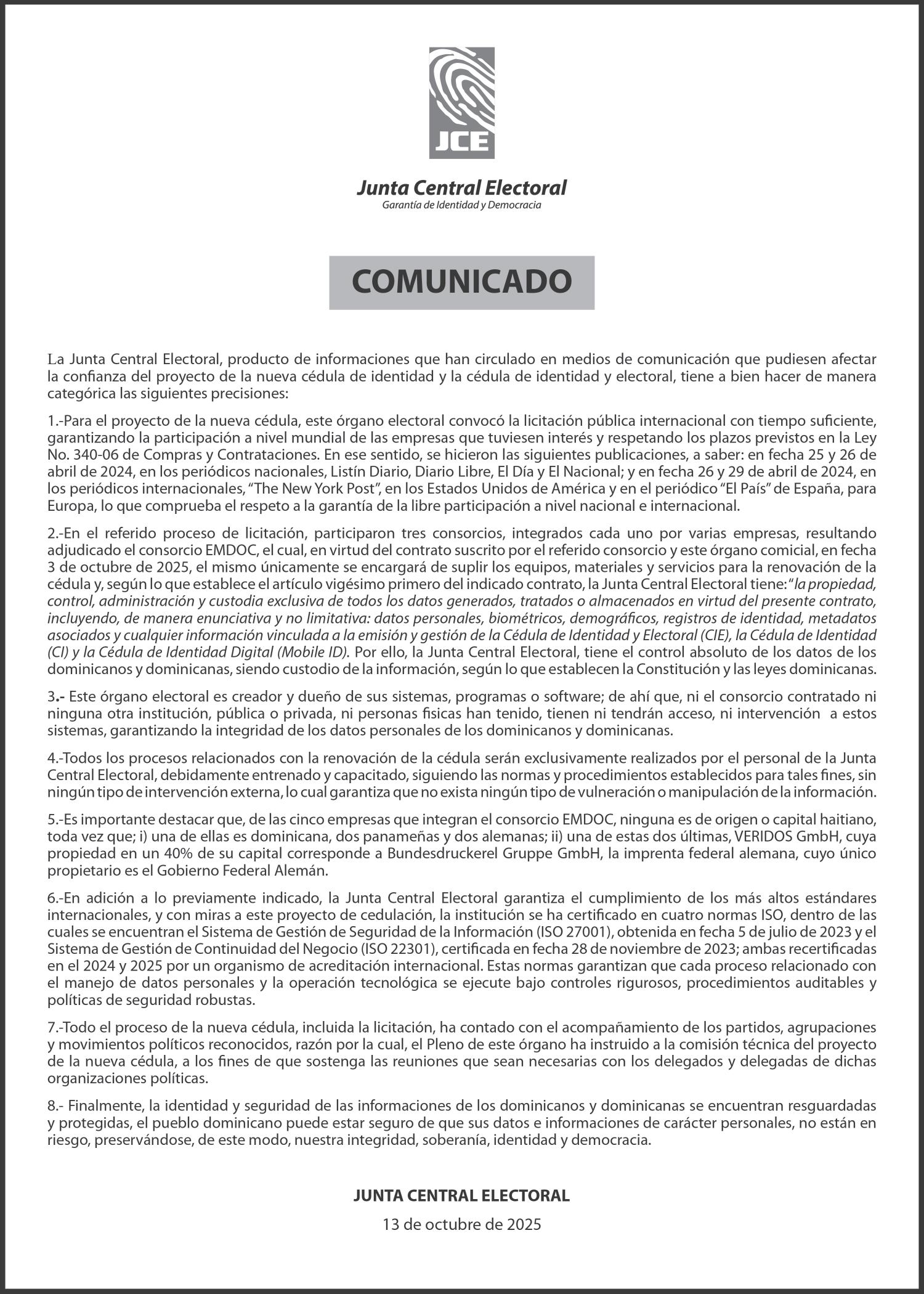Identidad. La Junta afirma que proceso de cédula será exclusivamente realizado por su personal; Pasaportes garantiza seguridad de los datos. P.6