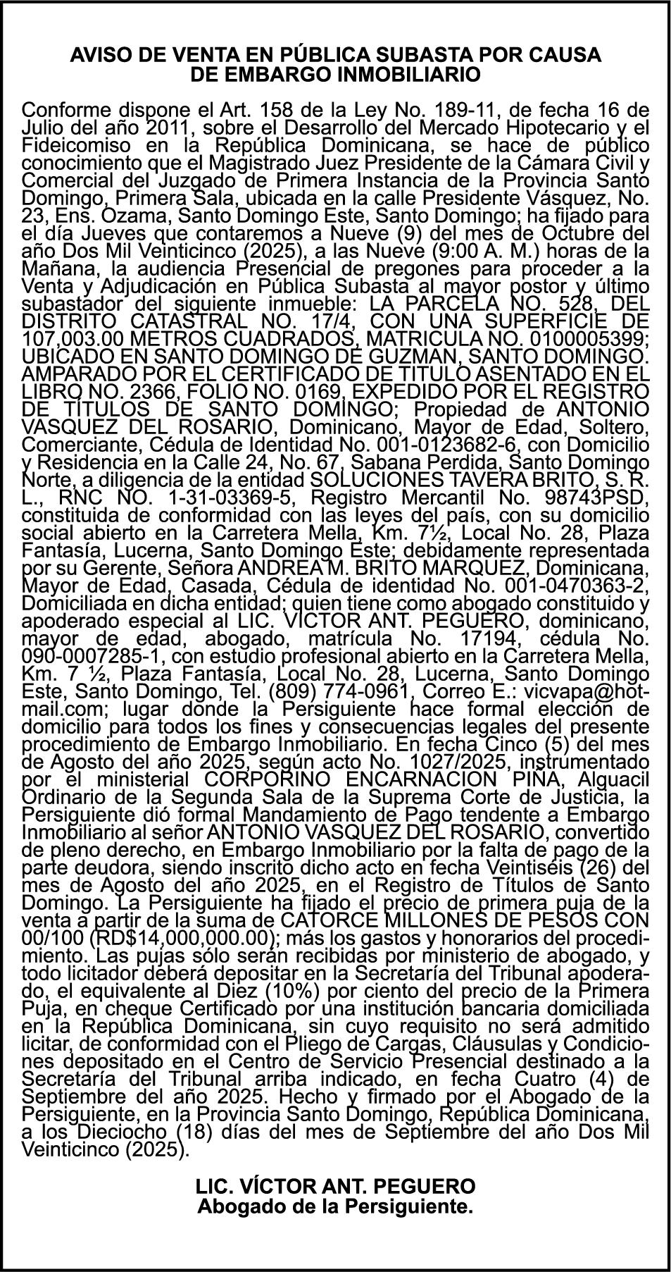 SE hace de público conocimiento la pérdida del Certificado Financiero número 825021462 emitido por Banco Popular Dominicano, S. A. Banco Múltiple, a nombre de JUAN CAMPUSANO PEGUERO, portador de la Cédula de Identidad y Electoral número 093-0038785-0, certificado número 825021462 expedido en 19 de noviembre de 2021 por el monto de (RD$110,045.78) más intereses generados a la fecha.