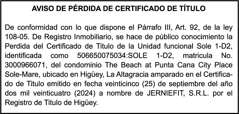 PERDIDA DE PLACA No. G601674, Jeep PEUGEOT, modelo 5008, color blanco, año 2023, chasis VF3M45GYVPS000847, a nombre de RAMONA ALTAGRACIA PIMENTEL VILLETA, Ced. 00107807265.