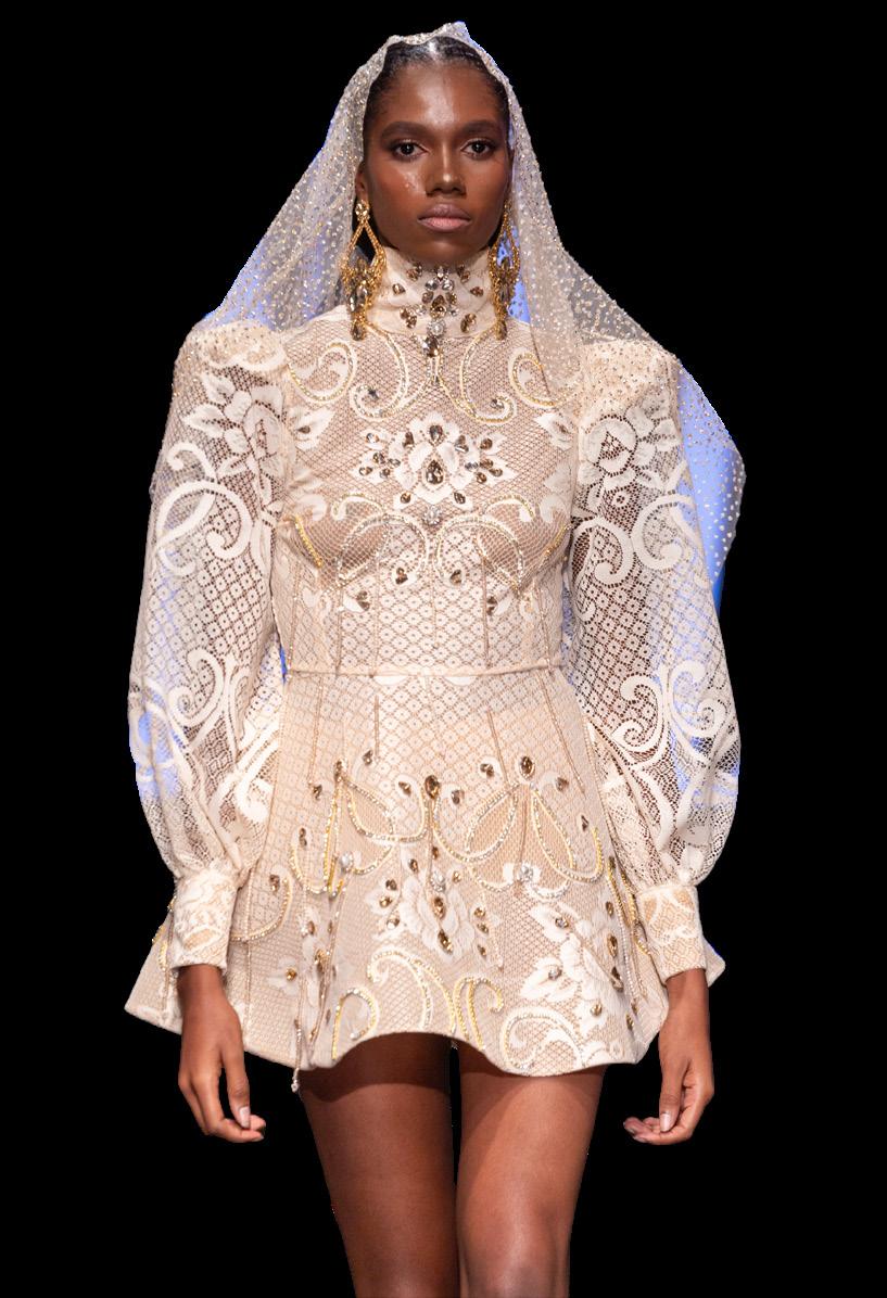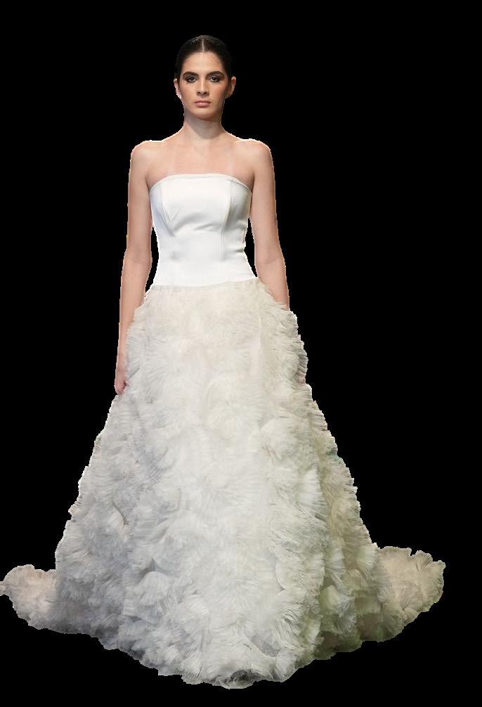 Su colección deslumbró con ricos textiles que van desde encaje suizo hasta chantilly francés. Para quienes buscan un vestido atemporal y refinado, Rivero se presenta como una gran opción, ofreciendo elegancia y exclusividad para el gran día.