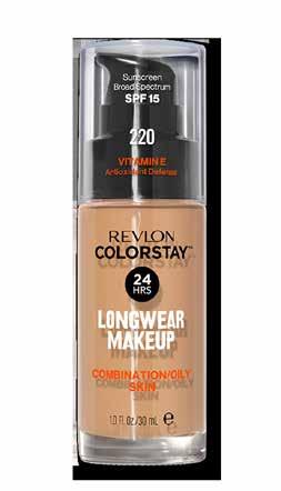 4 La marca Revlon se ha esforzado por brindar una gama de opciones y tonalidades para lucir un maquillaje impecable con las bases Color Stay reformuladas con ácido hialurónico y vitamina E.