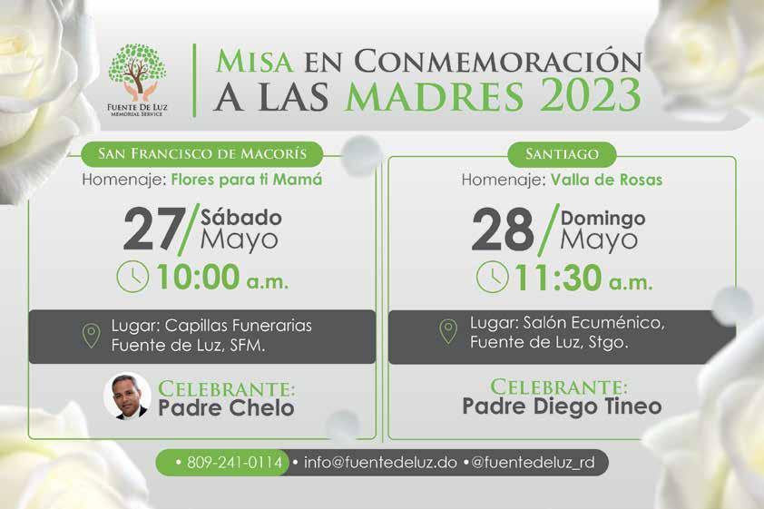REDACTORAS Pamela Toribio, Sophia Sanabria, Maryorie Peña Castellanos y Marcelle Cordero. COLABORADORES Fernando Santos, Víctor Nicolás, Enyer Díaz, Lauren King, Leandro A. Sánchez y Sarah Despradel. VENTAS Annetty Aquino. CREADORA DE CONTENIDO Liza Pilarte.