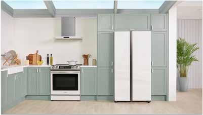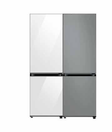 Viene en tonos Clean White, Satin Gray + Clean White y Clean Navy + Clean White; y en materiales como vidrio o satinado. Más en Samsung.com/latin/refrigerators.