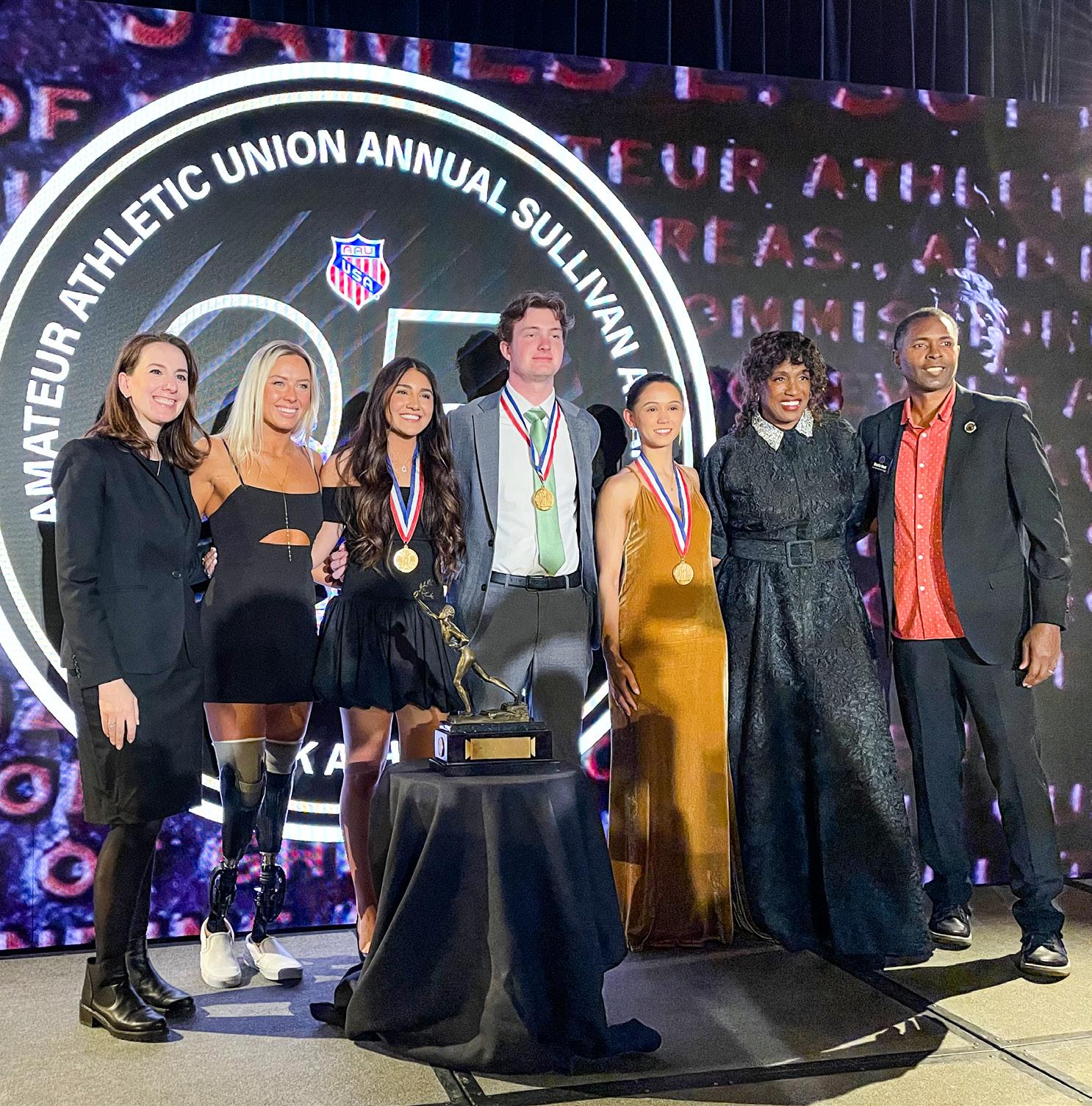 Several past Sullivan Award winners were in attendance, among them Paralympic swimmer Jessica Long, who won 18 years ago. “The Sullivan Award for me as a 15-year-old girl changed so much for my career and my life,” said Long. “I’m the first Paralympian to have won this award, and I take that with such great pride and honor. … There are so many incredible Paralympic stories that I get really excited for the world to hear.”