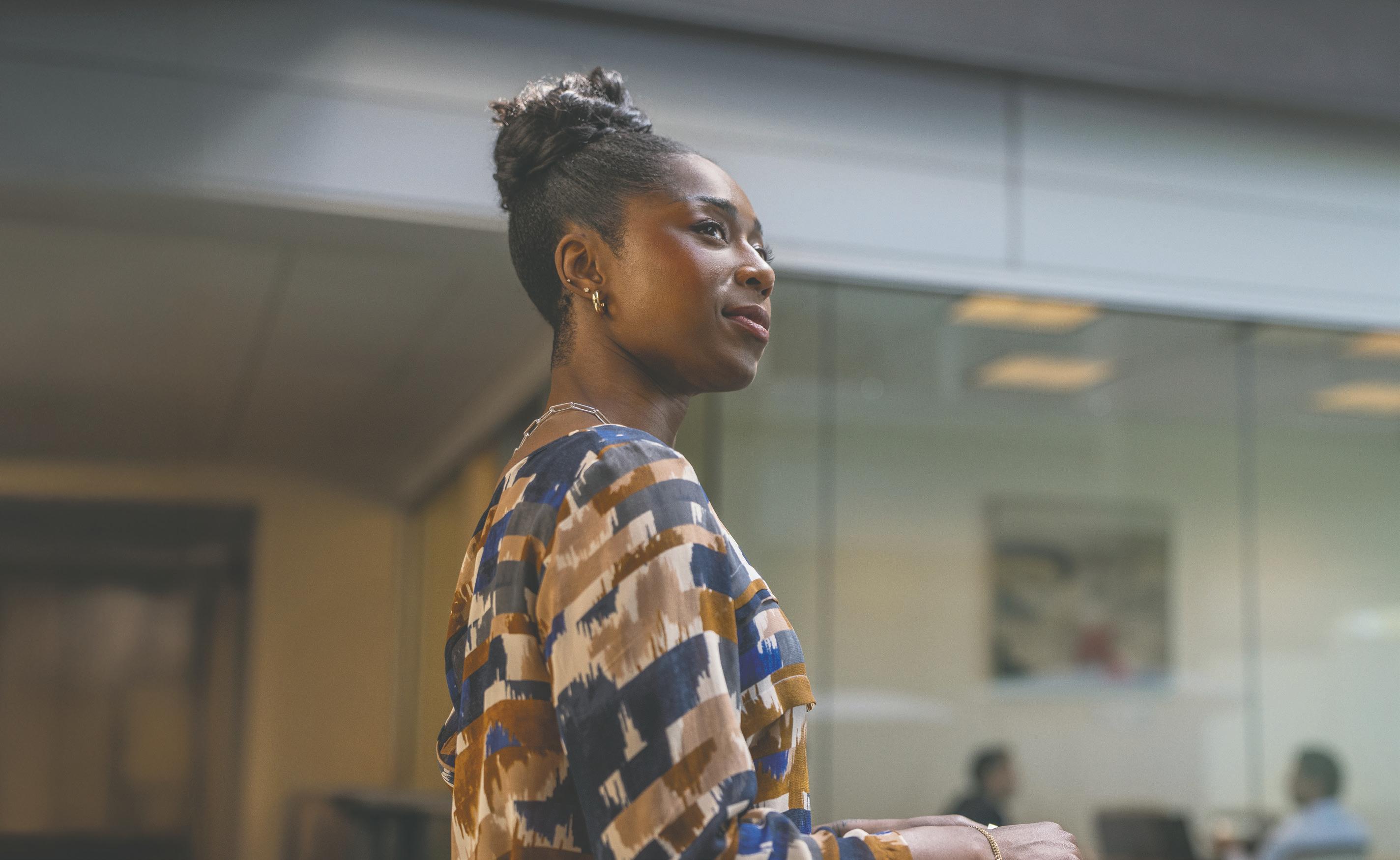 personal style, which is now characterized by locs and African-inspired clothing. “Whatever I put on, I want to feel good in it and I want to be who I am,” she said. “I want to be able to intertwine showing up for young women who could see themselves in the position and what that looks like.”
