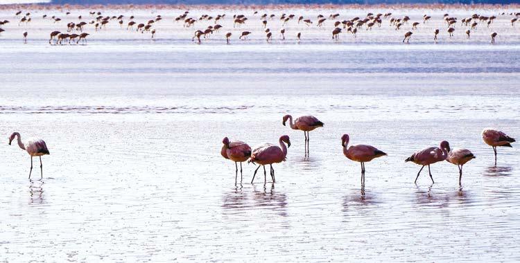 Es el lugar de cría de los flamencos andinos. Fotografía: el Salar de Uyuni es un paraíso para los fotógrafos, con paisajes surrealistas y efectos ópticos únicos.