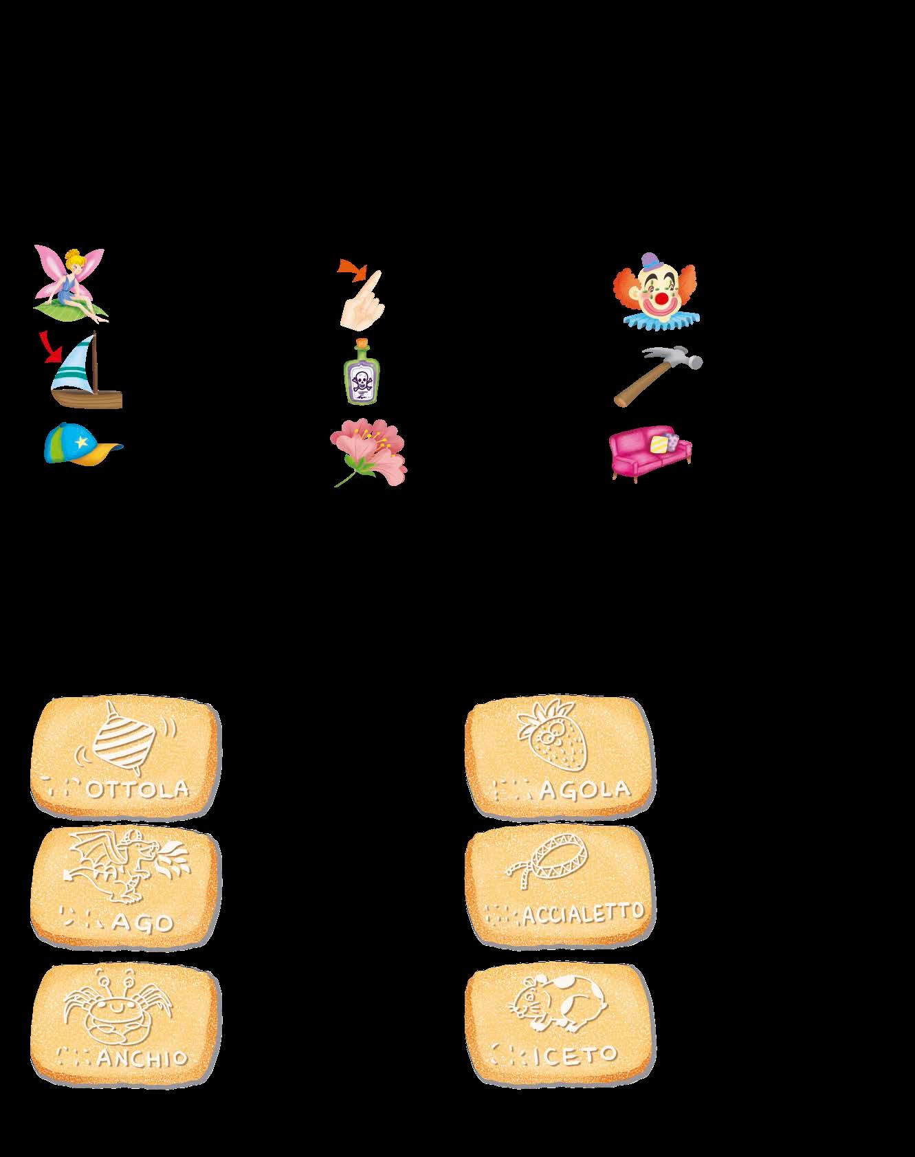 Ora che hai letto il primo capitolo della storia, alle pagine 4 e 5 del libro, aiuta Bruno a completare la vetrina della pasticceria. Collega ogni dolce allo spazio corrispondente, poi scrivi al posto giusto: