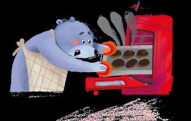 Bruno l’orsetto, un abilissimo pasticciere, capace di sfornare ogni leccornia in fatto di dolci: torte, ciambelle, pasticcini, crostate, biscotti, cioccolatini, gelatine...