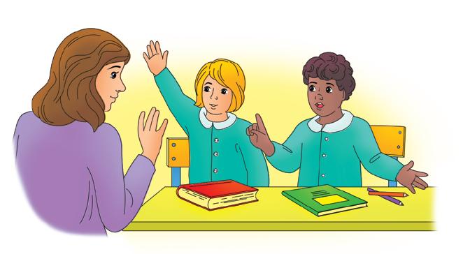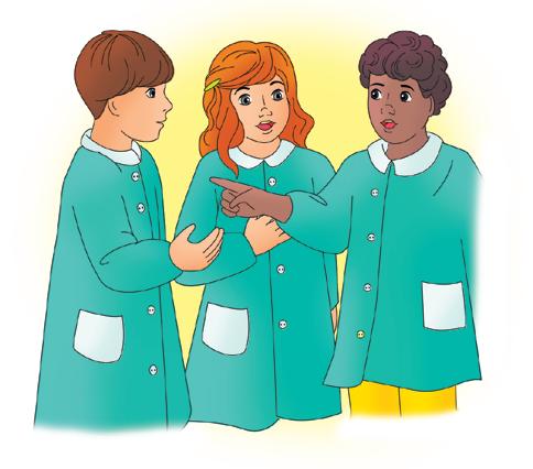 ▶ Cosa si fa a scuola? Colora e racconta.