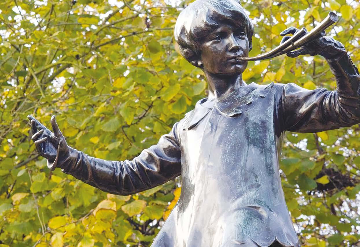 In London, on the banks of the river which separates Hyde Park from Kensington gardens, stands the statue of Peter Pan, playing a flute. The author J.M. Barrie, who wrote about the boy who didn’t want to grow up, lived very close to that place, and often walked in the park in search of inspiration* for his books.