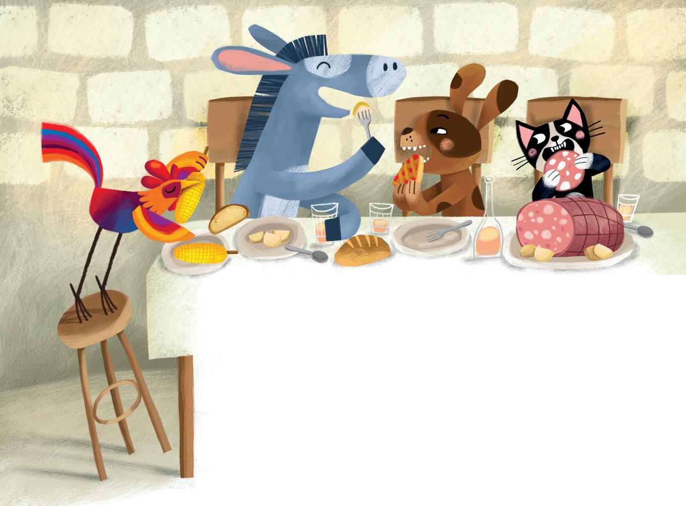 – Let’s not go to Bremen� Let’s stay here and have fun! – says the donkey�