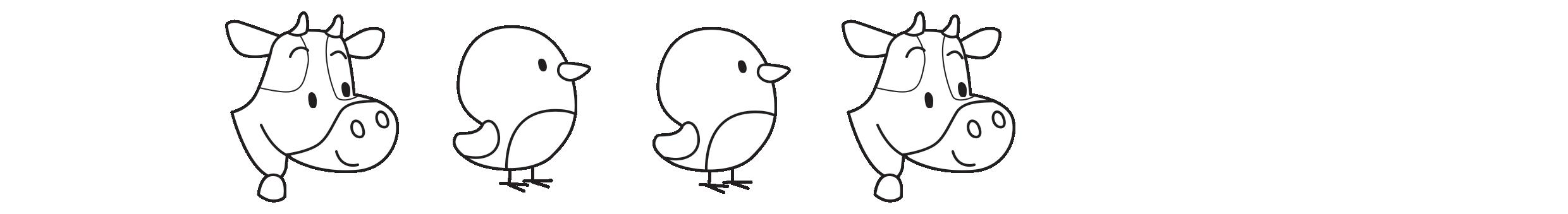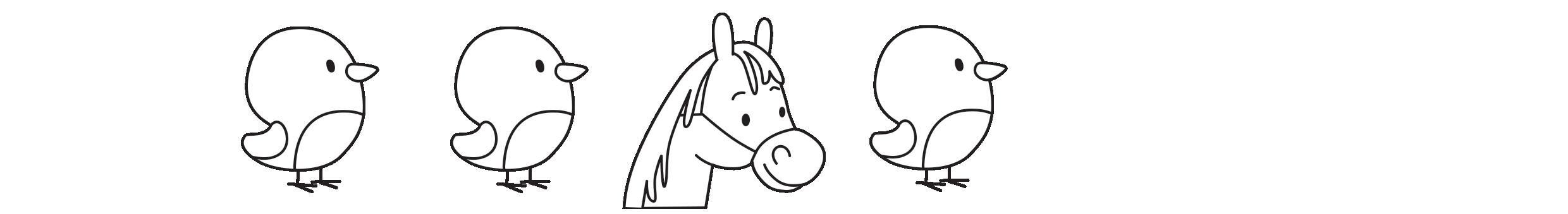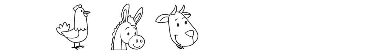 horse • cow • pig • goat • sheep • mouse • hen • chick • donkey duck