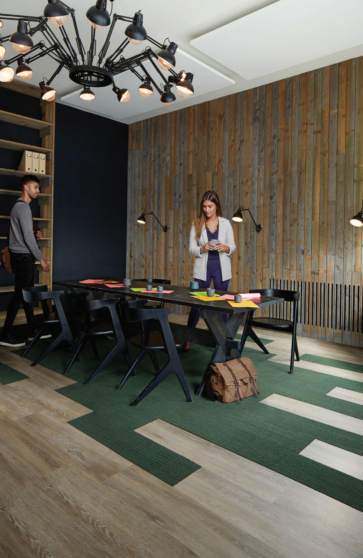 Interface LVT and Carpet Tiles are designed to work together, seamlessly with no transition strips. Hard surfaces, soft textures, and endless pattern and colour combinations – all you need is a vision.