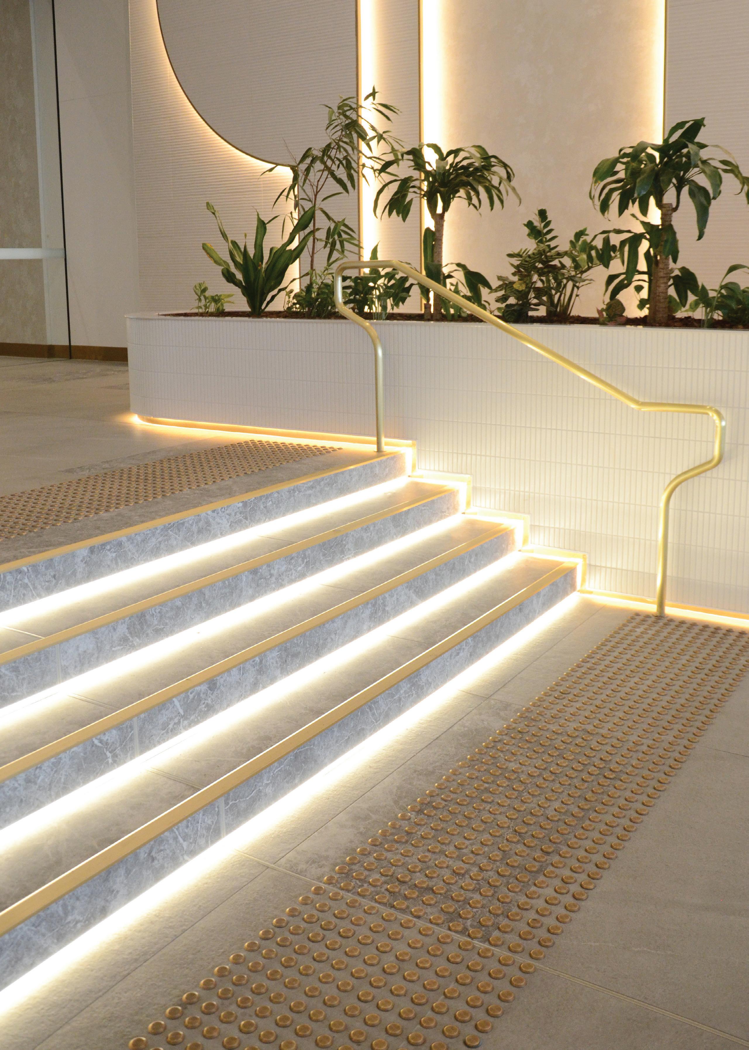Whether in public buildings, commercial spaces, or residential areas, the installation of TGSI and Stair Nosing showcases a commitment to both safety and design and creating an inviting environment for all to enjoy.