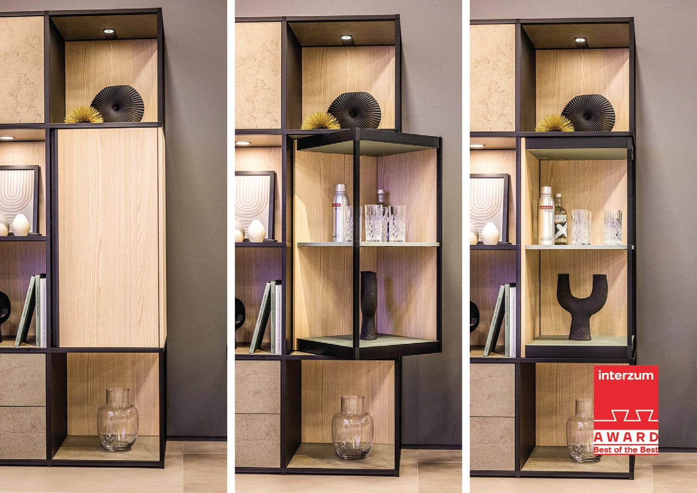 How can furniture and fittings adapt to different life and living situations in all the available spaces for homes? The challenge is to develop modular and multifunctional products. How about an intelligent door opener that responds to voice commands? In another new development, a high-quality thin veneer is bonded to a textile backing to create a new material for covering upholstered furniture. And the OrganiQ drawer insert developed by Kesseböhmer is an alternative to solid wood and consists largely of natural fibres. z