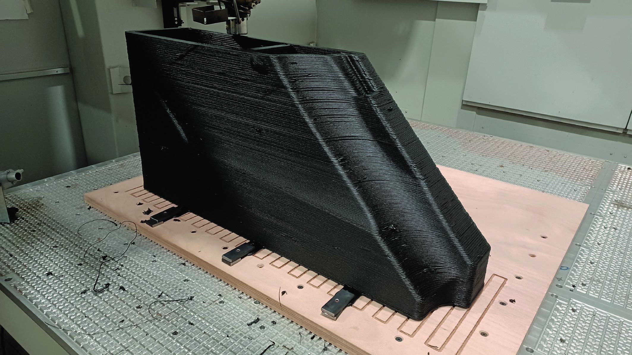 CMS' patented milling-to-printing automatic head change system eliminates the need for manual operation, streamlining production processes. Specialised slicing software has also been developed to manage print temperatures, minimise print time, and simplify the production process. The results speak for themselves. Material and weight savings of up to 80% are possible - a number that is far from insignificant. Especially in the current economic and logistics climate.