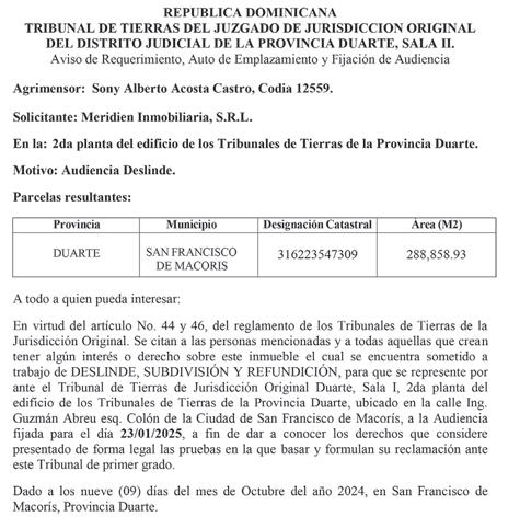 por el Proyecto de la Cuenca del Yuna, ya incluido en la ley de presupuesto del 2025, que beneficiará 800,000 tareas comprendidas en las provincias Sánchez Ramírez, Duarte, Samaná y María Trinidad Sánchez. En ese mismo orden, destacó el proyecto del canal Alto Mao, obra de 32 kilómetros, en Valverde, que optimizará el riego de 250,000 tareas cultivadas, e incorporará otras 23,850 tareas.
