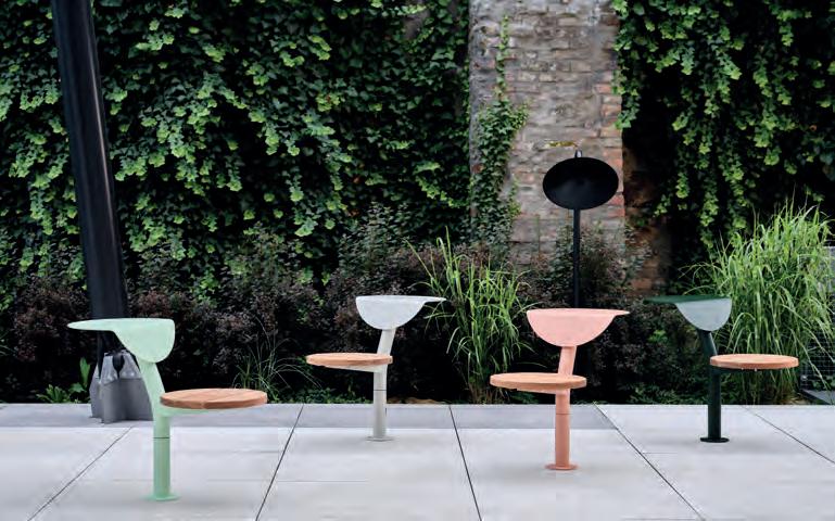 A random turn for a random encounter. The Morse collection is expanded with the stand-alone element Morse Dot. Experience the playful swivel variant of public space. The single steel leg with a wood seat effortlessly transforms into a backrest and table in one.