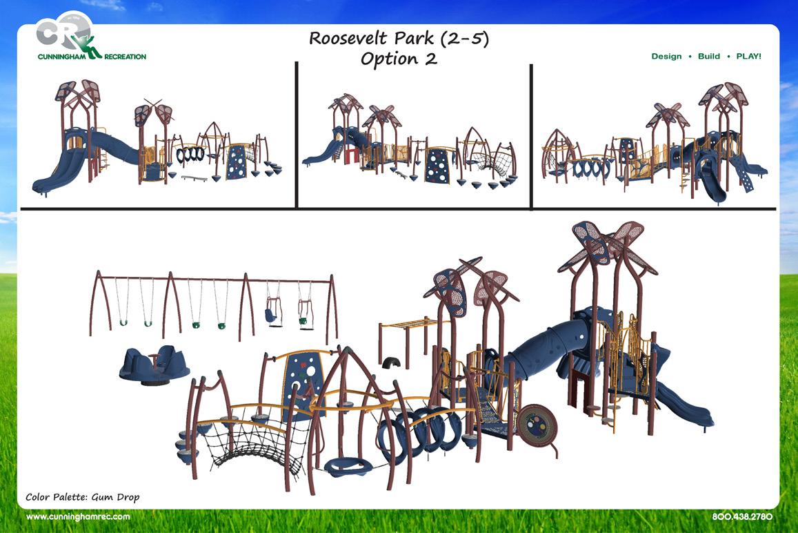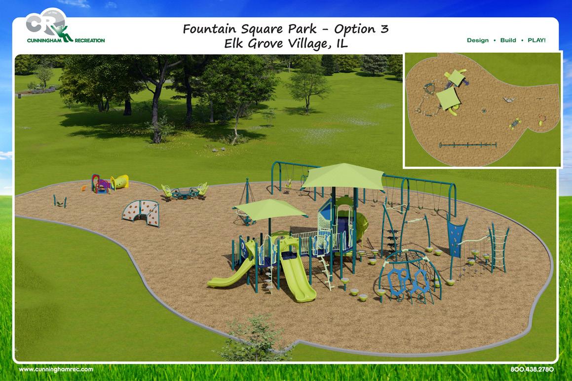 The Elk Grove Park District will be replacing Roosevelt Park, Udall Park and Fountain Square playgrounds this summer� A survey for each playground was sent to the surrounding neighborhoods for feedback Below are the chosen concepts for two of the playgrounds to be completed