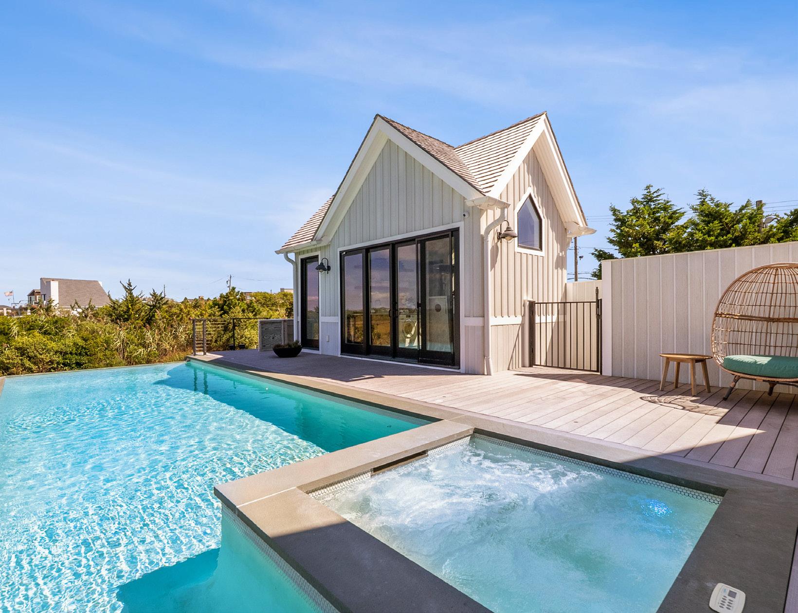 Moving outside, the property extends its luxurious offerings with a detached pool cabana, ideal for summer gatherings or peaceful afternoons. The infinity-edge heated pool, complete with a spa, offers an idyllic setting for relaxation and entertainment. Replete with private floating dock and bay access. The location of this home is second to none, with easy access to the ocean and proximity to village shops and dock, providing an ideal blend of convenience and tranquility. Welcome home where innovation meets luxury, and comfort meets style.