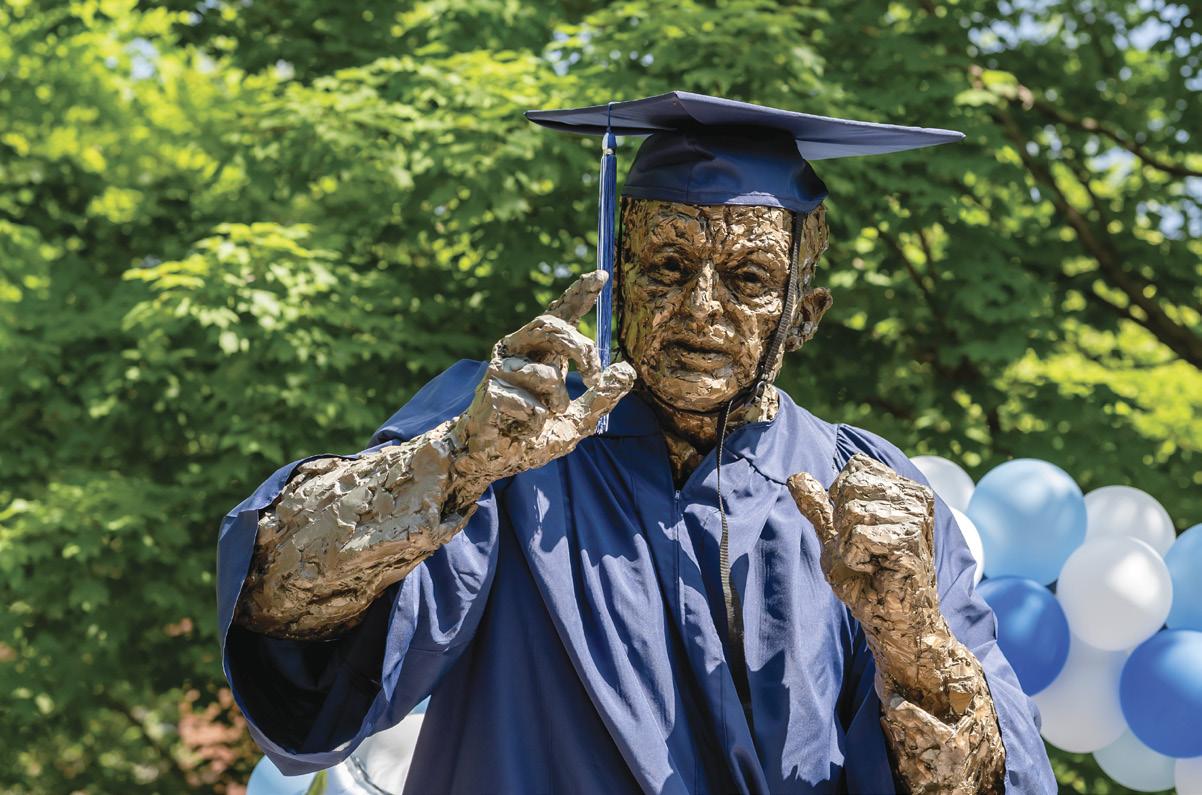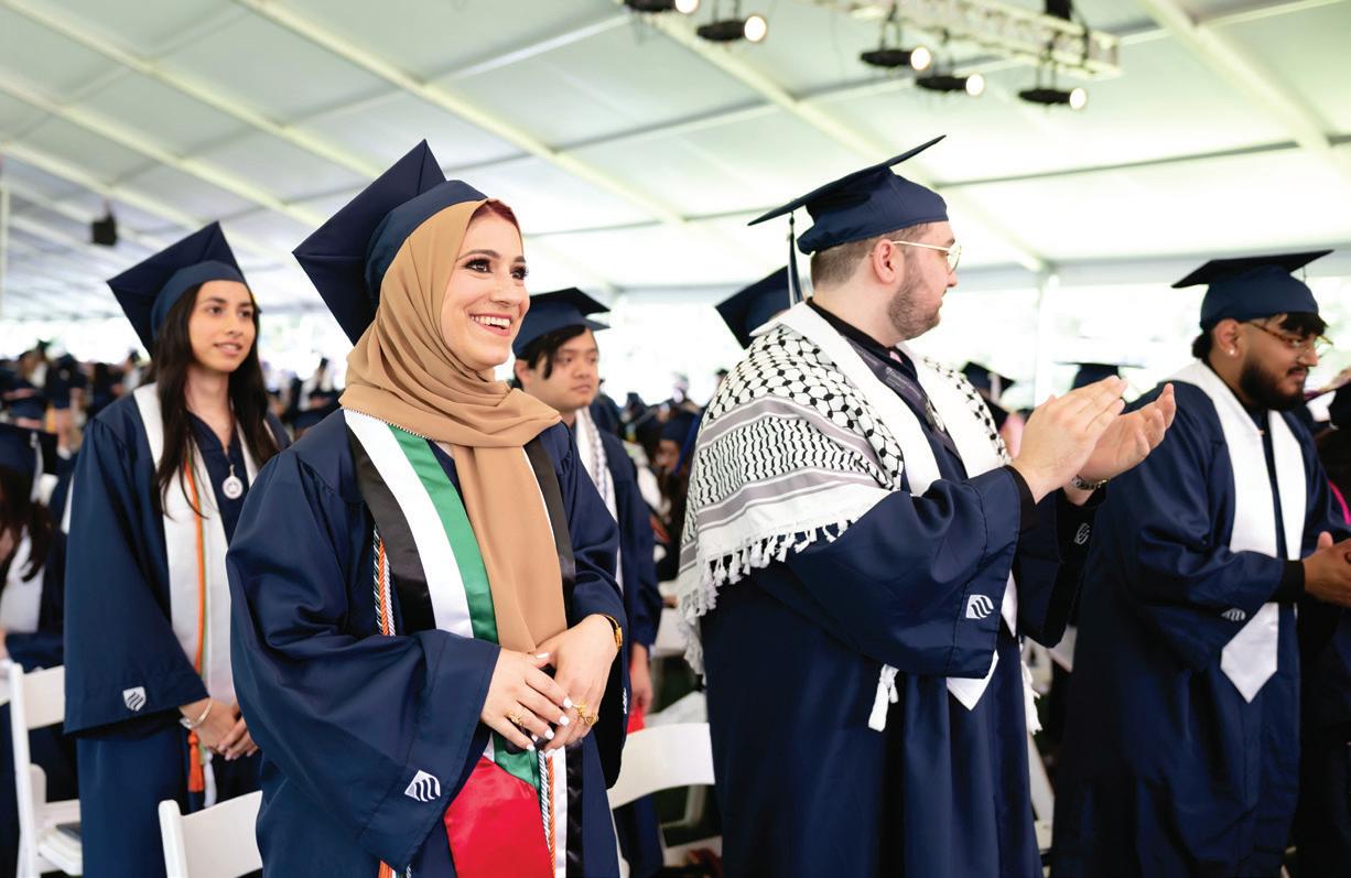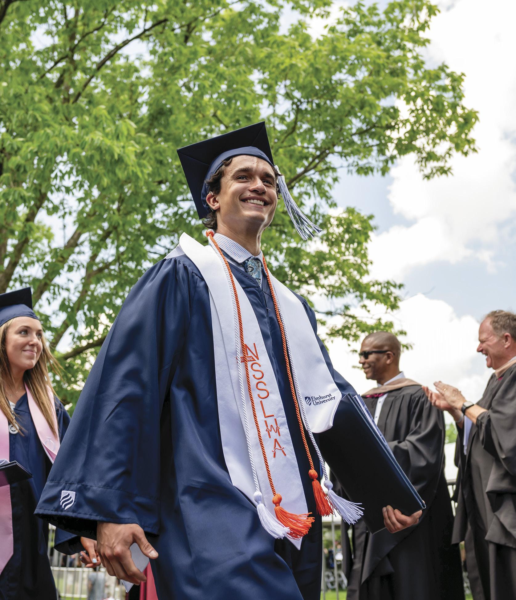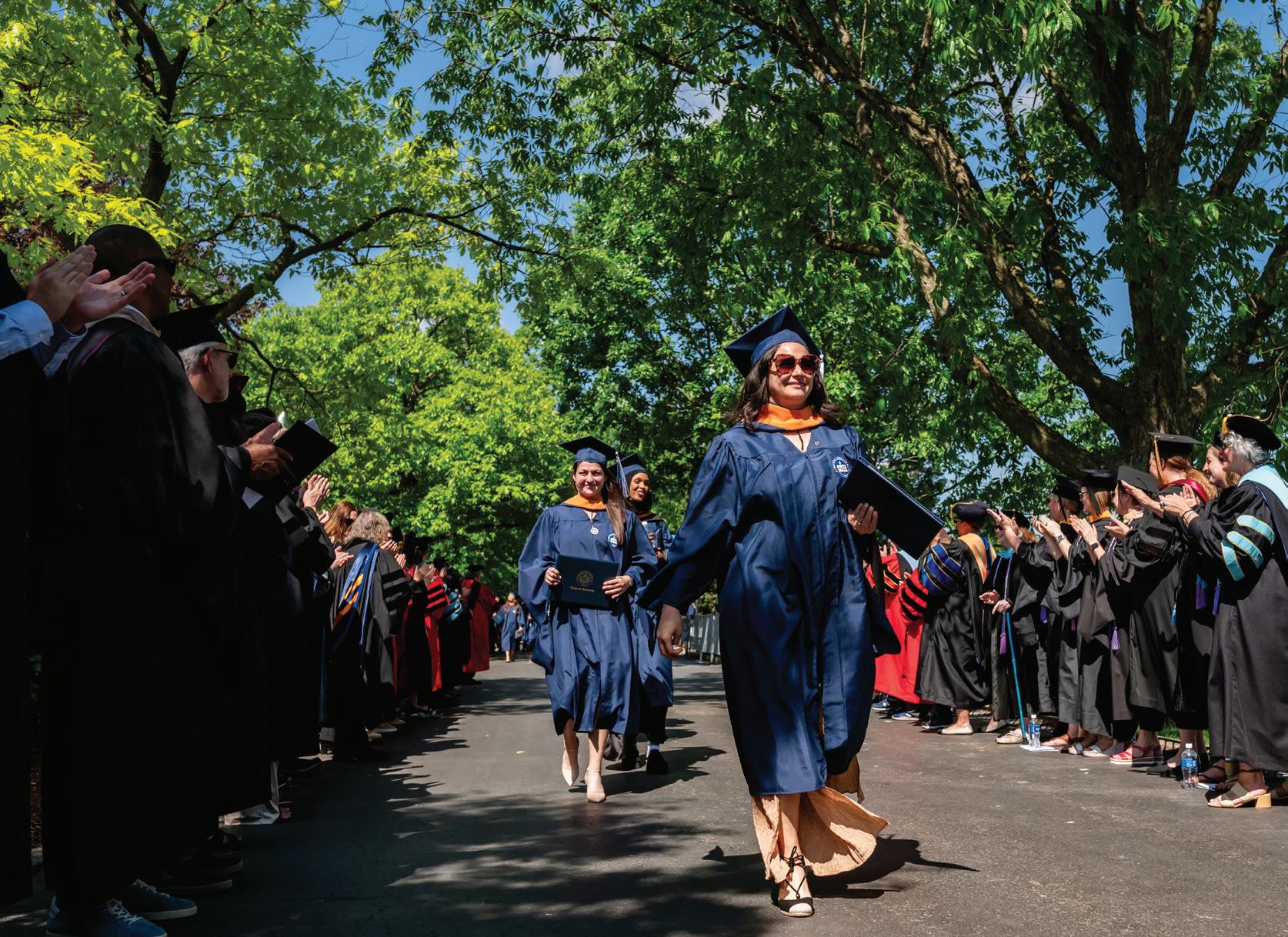 One of our favorite Commencement traditions takes place after the ceremony, as the long line of new graduates begins to leave the tent. As they emerge, they’re greeted with cheers and applause by our faculty, who have lined up on both sides to form a jubilant corridor of appreciation for all the students have achieved.