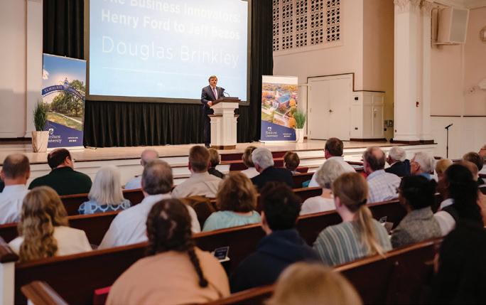 Douglas Brinkley spoke on April 16 about history-making business innovators, from Henry Ford to Jeff Bezos.