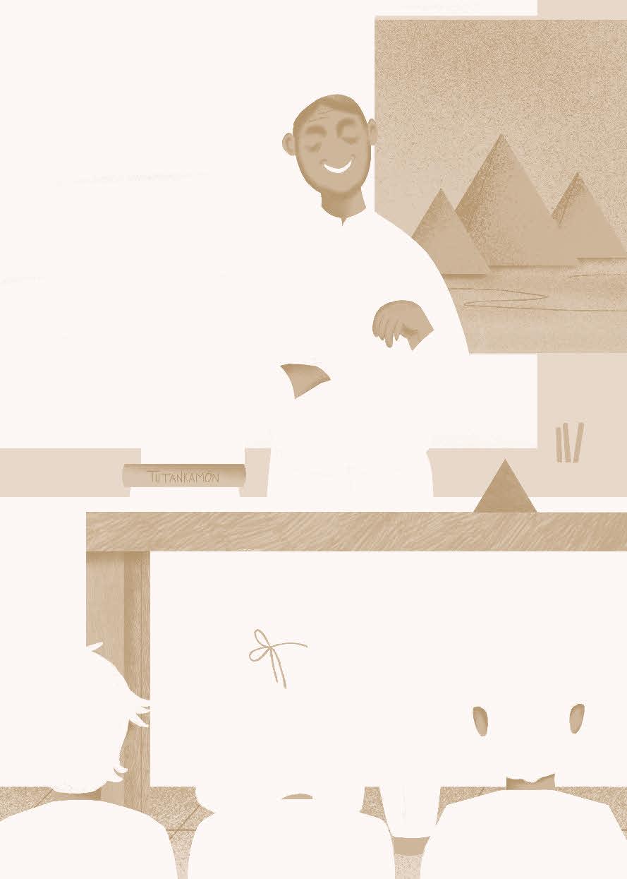 —Van a tener una oportunidad única, muchachos. ¡Poder ver a la mismísima momia del faraón Tutankamón, y sin salir de la ciudad! ¡Qué lujo! Cuando yo estudiaba, me hubiera gustado tener tanta suerte.