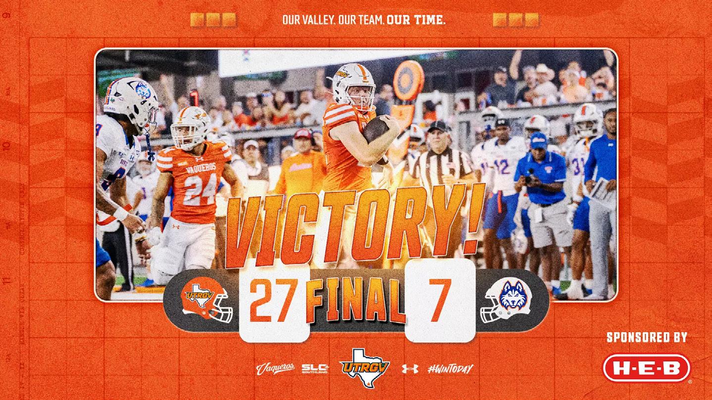 Now midway through the season, UTRGV has a bye during week 7 before resuming action on Saturday, Oct. 18 at 3 p.m. at No. 25 Lamar. Fans can watch online domestically on ESPN+ and internationally on Southland International. Fans can also listen locally on Ultra 90.1 FM, in Laredo on Pure Country 95.7 FM, and online via the Radio Para Mi app.