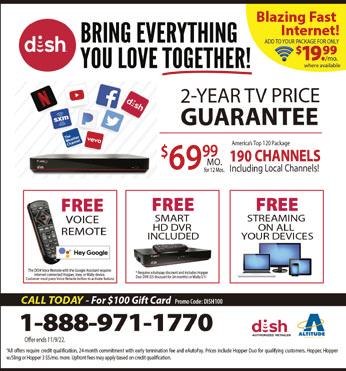 For 190 Channels! Blazing Fast Internet, $19.99/mo. (where available.) Switch & Get a FREE $100 Visa Gift Card. FREE Voice Remote. FREE HD DVR. FREE Strea ming on ALL Devices. Call today! 1-888-971-1770