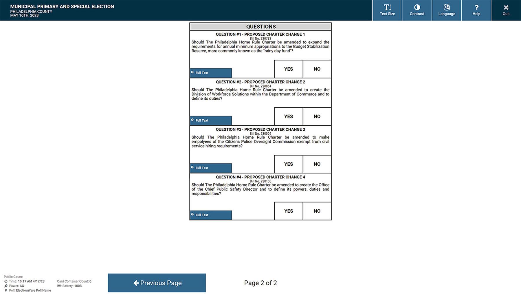 Ante cualquier situación que se presente el día de las elecciones, como inquietud, intimidación, interferencia o votación ilegal, los ciudadanos pueden comunicarse con el Grupo de Trabajo Electoral del Fiscal de Distrito al 215-686-9641.