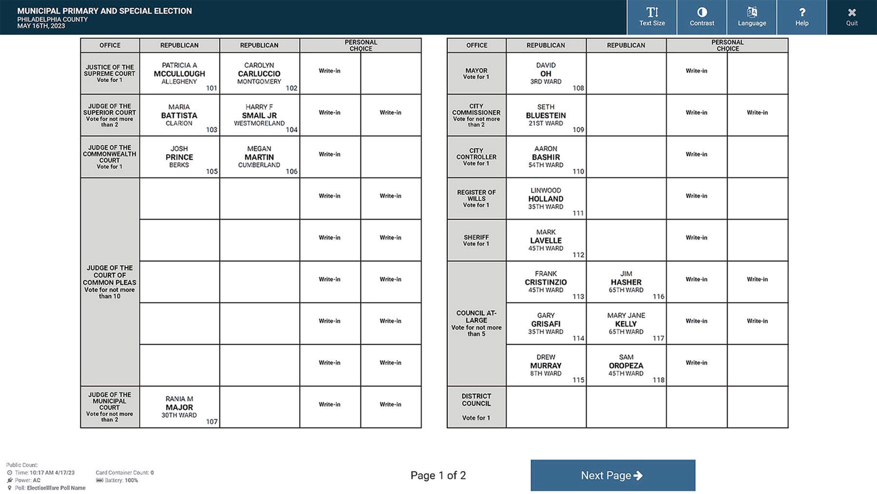 P HILADELPHIA , PA. B EATRIZ O LIVA .- Pensilvania se prepara para celebrar un acto de democracia en las elecciones primarias, pautadas para el de 16 de mayo, donde los ciudadanos podrán elegir entre los candidatos a la Alcaldía de Filadelfi a, Concejo Municipal, Contralor, Registros de Testamentos, Alguacil, Comisionados Municipales y jueces.