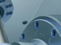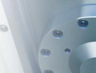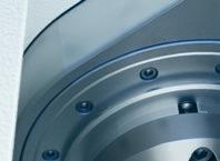 Auf dem Grundfl ansch befindet sich ein Anschlag, der perfekt an die Fenster-Geometrie angepasst wird –inklusive erhabener Stellen, die unter den Stegen des Käfigs liegen und somit die Bearbeitung nicht beeinflussen. Dazu kommt ein Zentrierbolzen, der das Werkstück in der Mitte fi xiert, ohne es zu verformen. Das eigentliche Spannen erfolgt über den gegenüberliegenden Reitstock mit einem Anschlagteller. Das Umrüsten erfolgt rasant schnell – nur der Bolzen muss ausgetauscht werden, wenn die Fensteranzahl gleich bleibt.