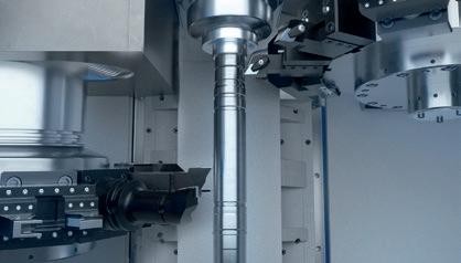 Herzstück ist die Doppelspindelanordnung. Zudem überzeugt die doppelwandige Gantry-Bauweise. Die- se sorgt in Verbindung mit einem Grundkörper aus Polymer beton für höchste Stabilität – Weichund Hart bearbeitung auf höchstem Niveau.