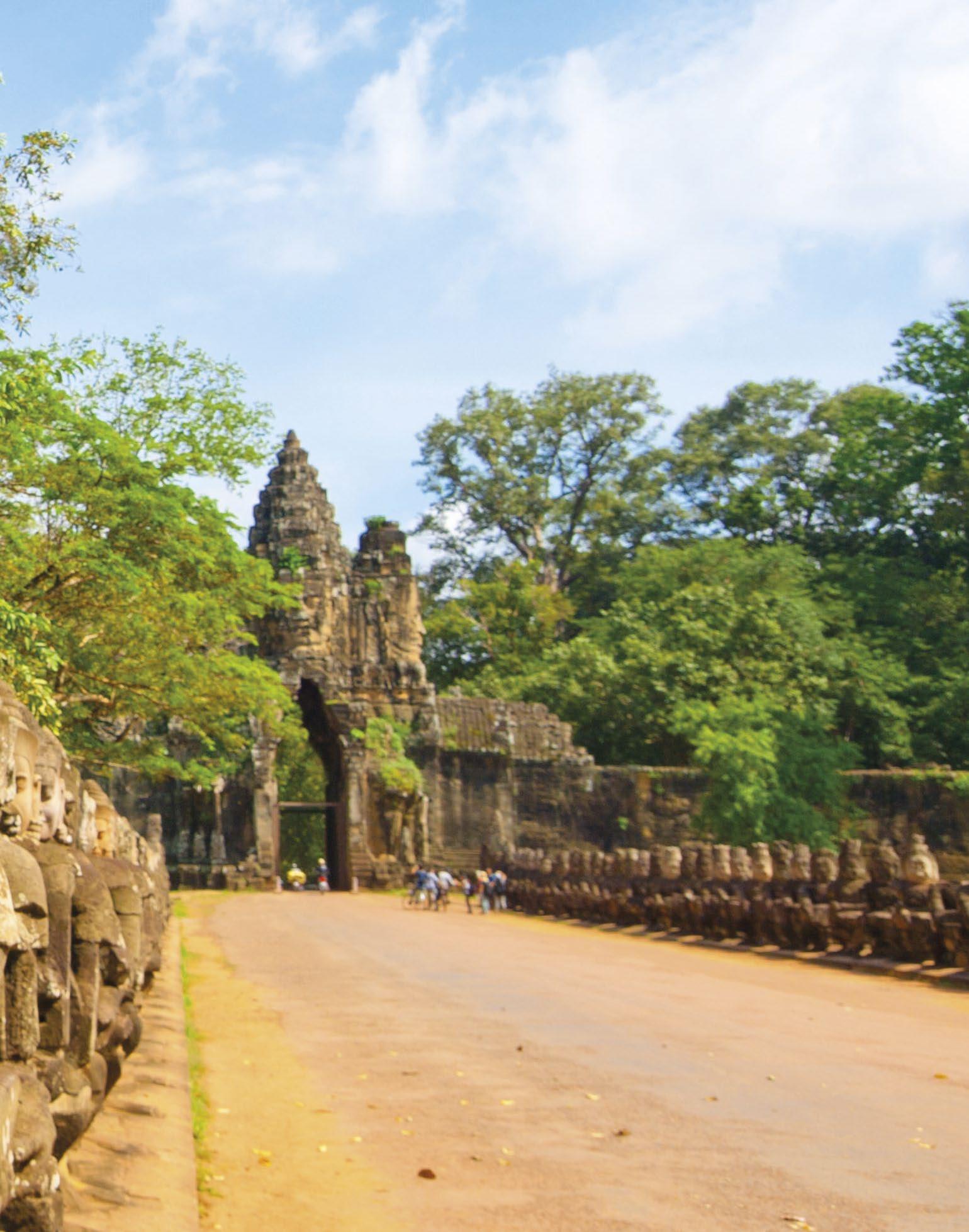 VIETNAM CAMBODIA LAOS THAILAND CHINA Mekong River SOUTH CHINA SEA My An Hung Ben Tre Ho Chi Minh City Halong Bay Luang Prabang Sapa Hanoi Sa Dec Gieng Island An Long Tan Chau Phnom Penh Koh Khsach Krao Oudong Siem Reap Angkor Ban Lao Cai Peam Chi KongSiem Reap will forever be associated with centuriesspanning remains of the former Khmer capital, Angkor. The UNESCO World Heritage-listed Angkor Archaeological Park is home to famed temple complexes, including Angkor Thom, Bayon, and the near-mythical Angkor Wat, the architectural delight at the heart of both Khmer identity and the nation’s flag. To observe the first golden touch of dawn upon the ornamented stone spires is to regard one of the world’s greatest spectacles, a typically Southeast Asian synthesis of the man-made and the natural.