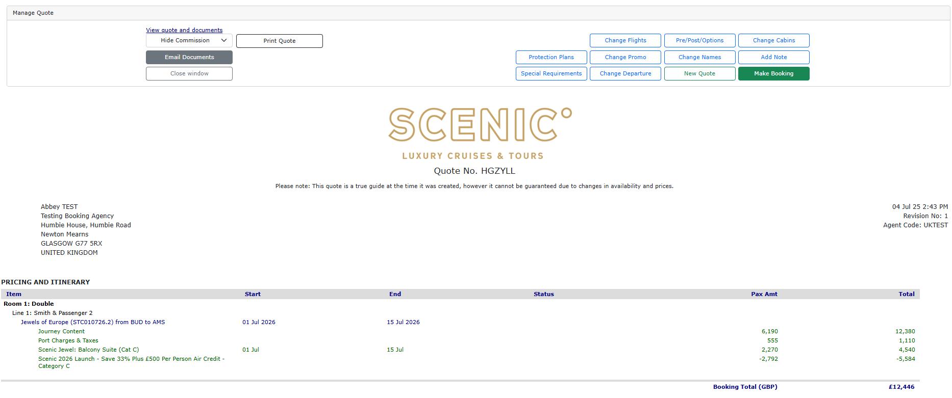 The Scenic Group requires specific information in order to fully complete and process your booking. Please visit tp.scenicglobal.com and complete all essential information.