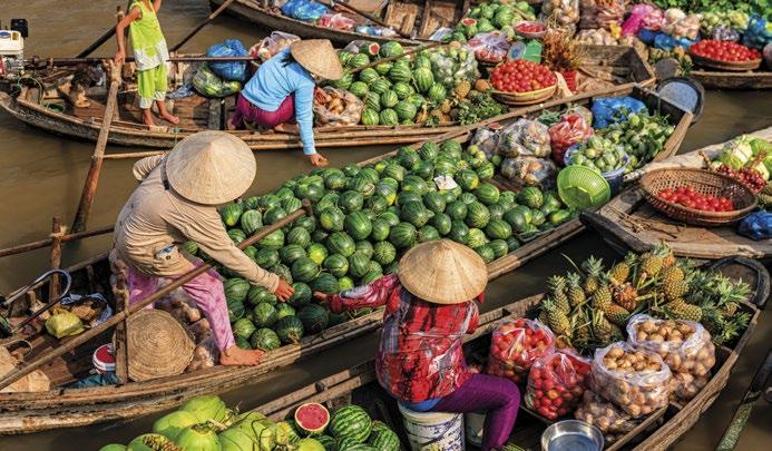 Traverse the spectacular maze that is the Mekong Delta, where traditional life is unique and captivating. Nicknamed the Rice Bowl of Vietnam, the environmental conditions are perfect for cultivating fruit, vegetables and rice, forming the livelihood of millions who call the banks home.
