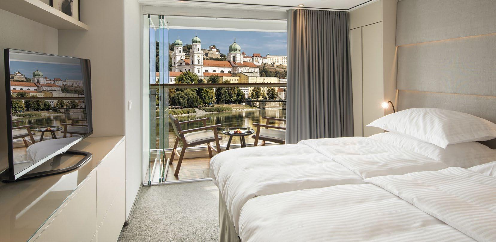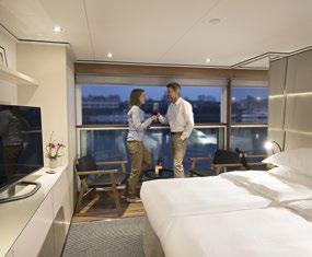 Private sanctuaries of peace and relaxation, our suite and stateroom categories boast all the amenities of a world-class hotel. With a number of suite and stateroom grades to opt for, no matter the space you choose, you’ll discover indulgent toiletries, luscious linens, and a combined flat-screen TV and infotainment system. Influenced by the very finest of contemporary design trends, every one of our suites features an ingenious all-weather balcony system, allowing you to enjoy the spectacular river views and ever-changing scenery.