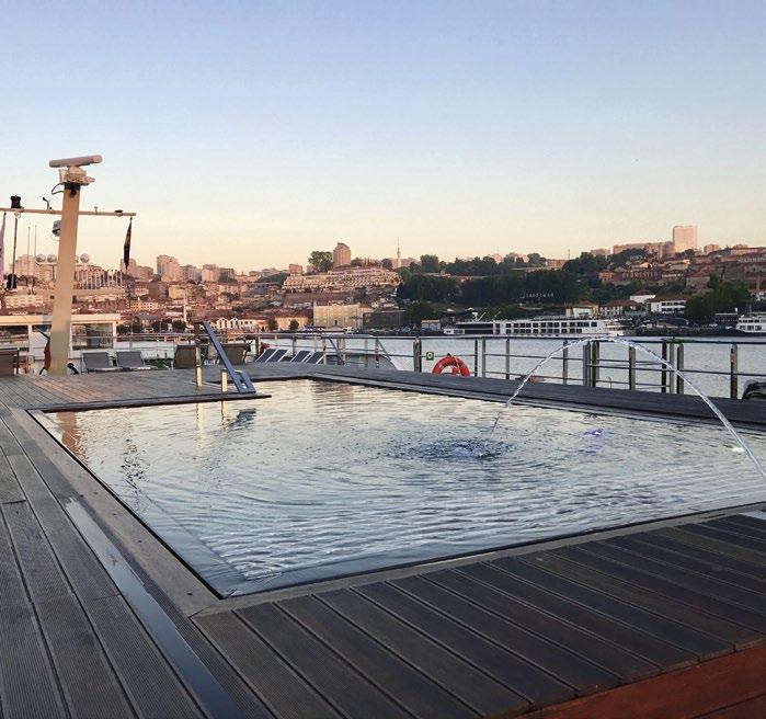 Custom designed for warmer climes, Emerald Radiance, sailing Portugal’s Douro River, is home to the Serenity Pool. On Emerald Radiance, the indoor pool is replaced by the heated spa-style Serenity Pool. An idyllic setting to bask in the rays of the Portuguese sun, and marvel at the geography of the Douro. On movie evenings, films are screened here beneath a blanket of stars.