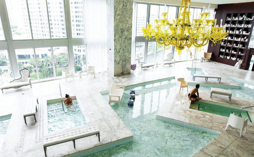 Rather than collecting autographs from Hollywood’s Golden Age actors and actresses, guests today take center stage when they swan down the dramatic “Stairway to Nowhere,” the hotel’s Instagrammable signature feature that graces the 17,000-squarefoot lobby. Guests also get the celebrity treatment when lounging around the picturesque oceanfront poolscape or enjoying the 40,000-square-foot spa.