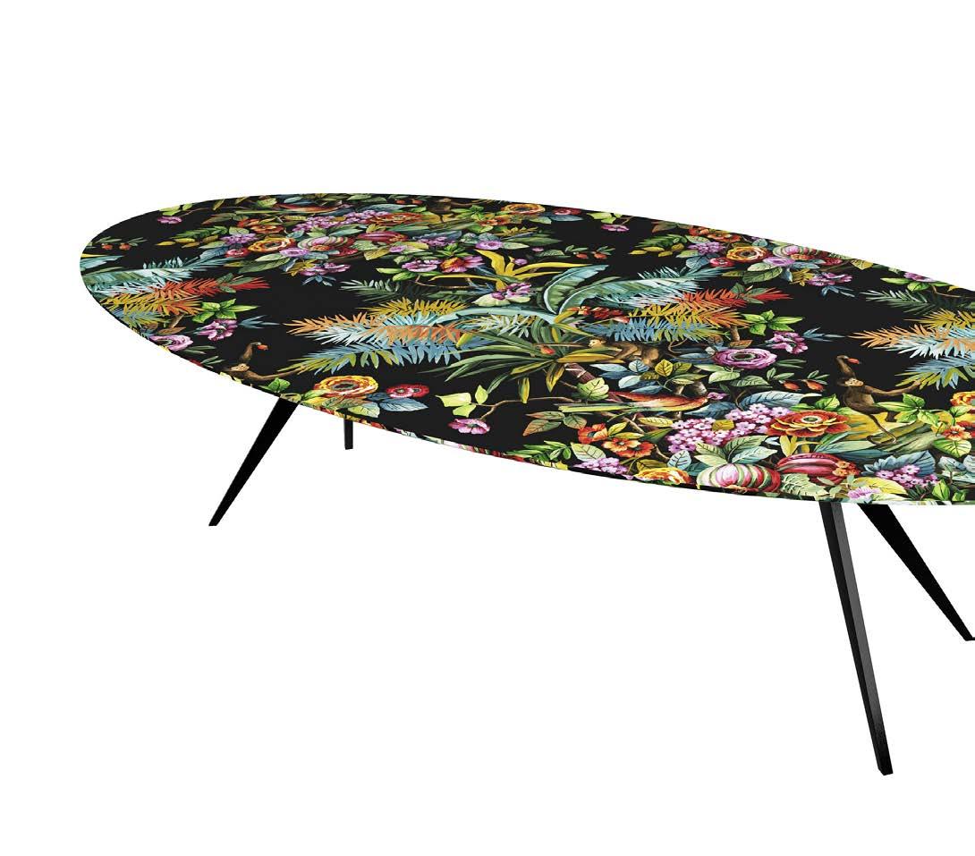 GREENERY ENTERS THE HOME, TAMED AND HARNESSED TO PROVIDE A WAVE OF PSYCHOPHYSICAL WELLBEING. DESIGN EXPLORES THE RELATIONSHIP BETWEEN ORGANIC AND ARTIFICIAL IN PHYTOMORPHIC FURNISHINGS, CABINETS INCORPORATING PLANTS, SURFACES WITH BOTANICAL PATTERNS, JUNGLE MOOD DECORATIONS. SHADES OF GREEN NOT ONLY IN WORDS, BUT ALSO IN PRACTICE.