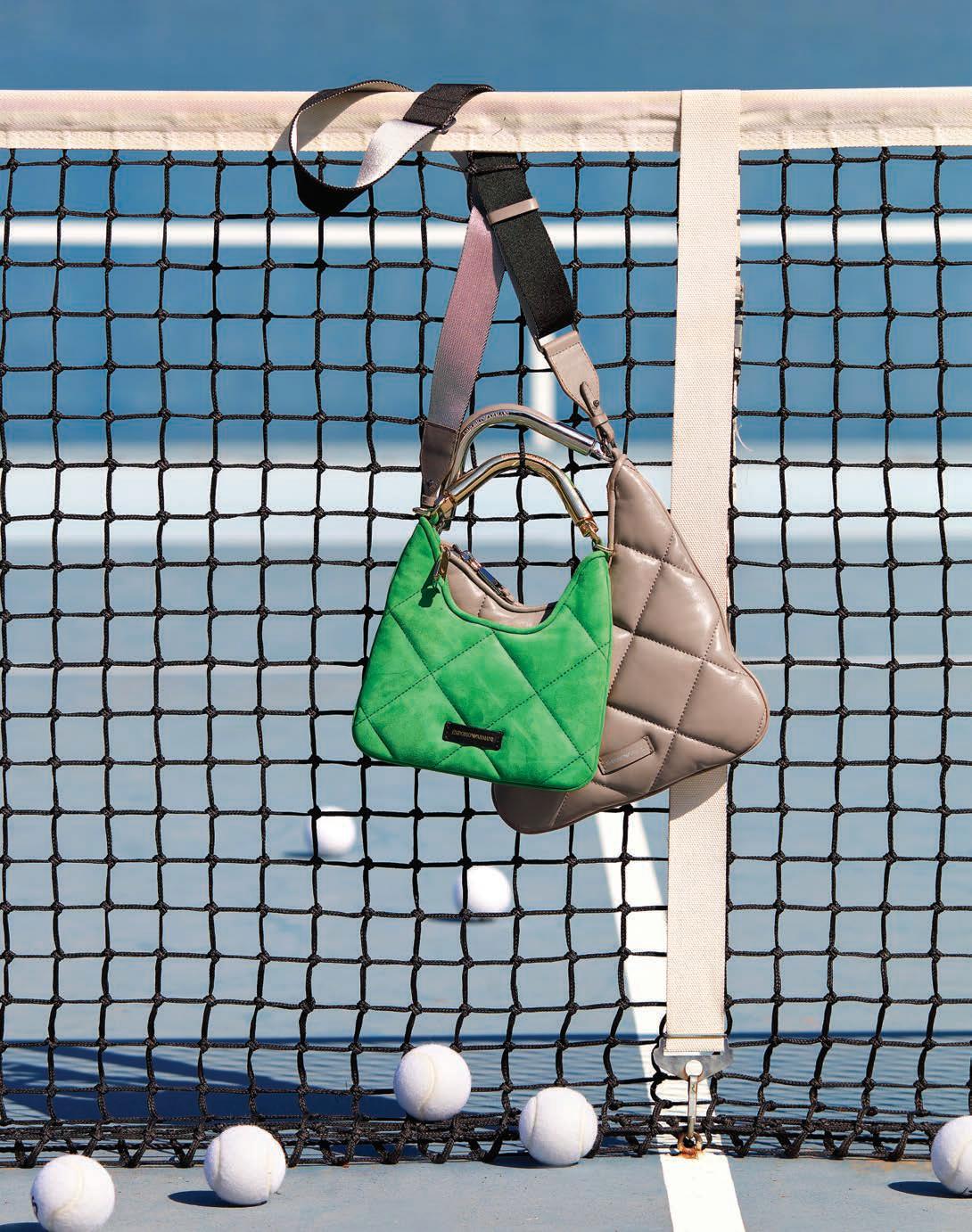 TOP LEFT: Furla large bag, furla.com; Borbonese small bag, borbonese.com; Wilson tennis rackets, wilson.com.