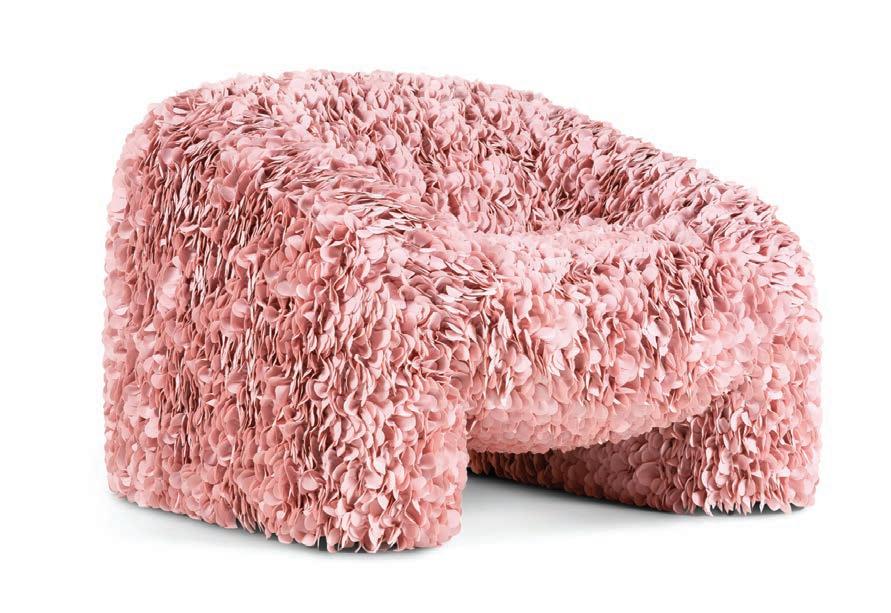 Reisinger and Júlia Esqué for Moooi: created as a digital project, it has been put into production with a textile covering of 30,000 laser-cut petals. Puntaspillone ottoman-seat by MissoniHome,