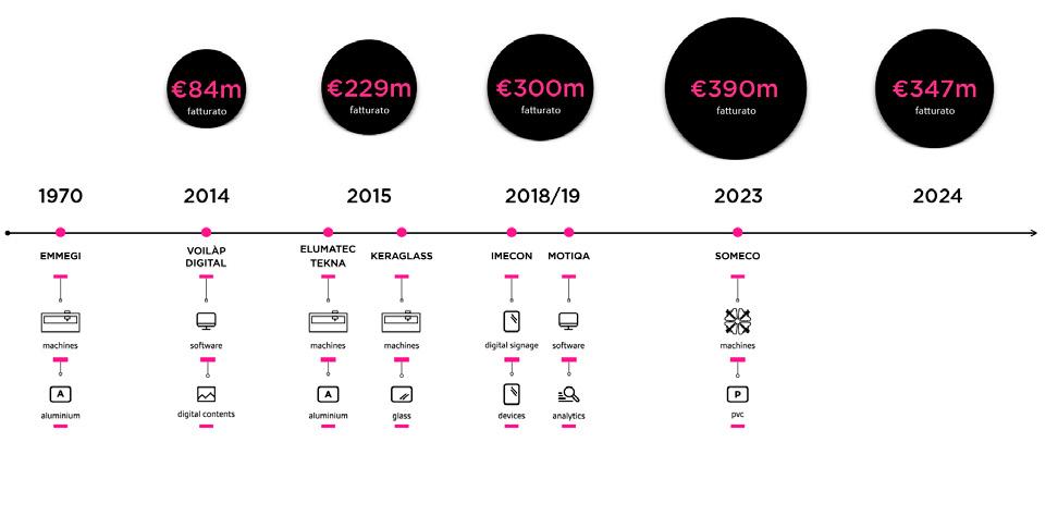Nel 2014 ha preso avvio un percorso di crescita dinamico sia per linee esterne che interne, volto alla costruzione del modello Voilàp come “One Company” orientata al B2B2C. Tra le prime tappe, l’acquisizione della maggioranza di Keraglass S.r.l., specializzata in impianti per la lavorazione del vetro, e di Tekna S.r.l. (successivamente fusa per incorporazione nella controllata Emmegi S.p.A.), storica azienda attiva da oltre 50 anni nel mercato delle macchine per la lavorazione di estrusi in alluminio. Nello stesso anno è stata costituita Voilàp Digital S.r.l., digital company che offre servizi al settore industriale per l’ottimizzazione dei processi di business offline-online.