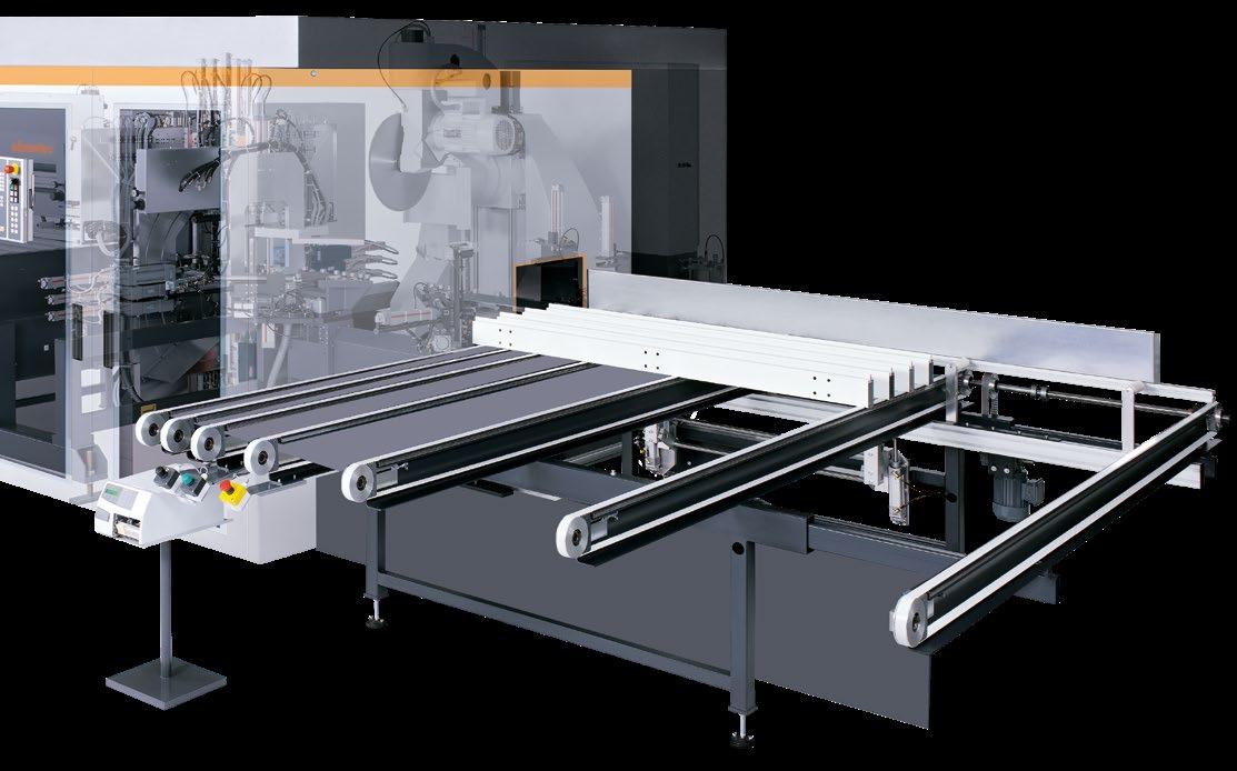 • Transporte de piezas al exterior a través de transportador de correa más función de elevación para transporte al exterior de los perfiles acabados sin influir en el proceso automático